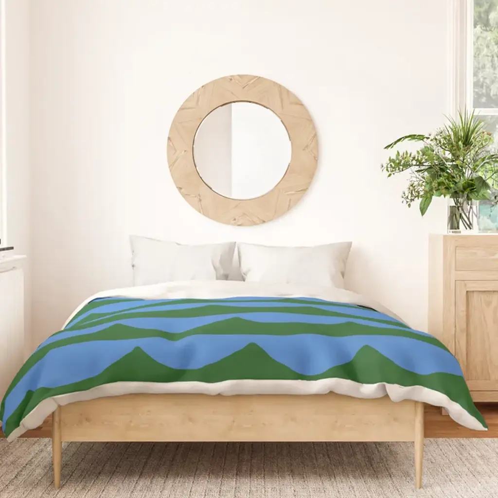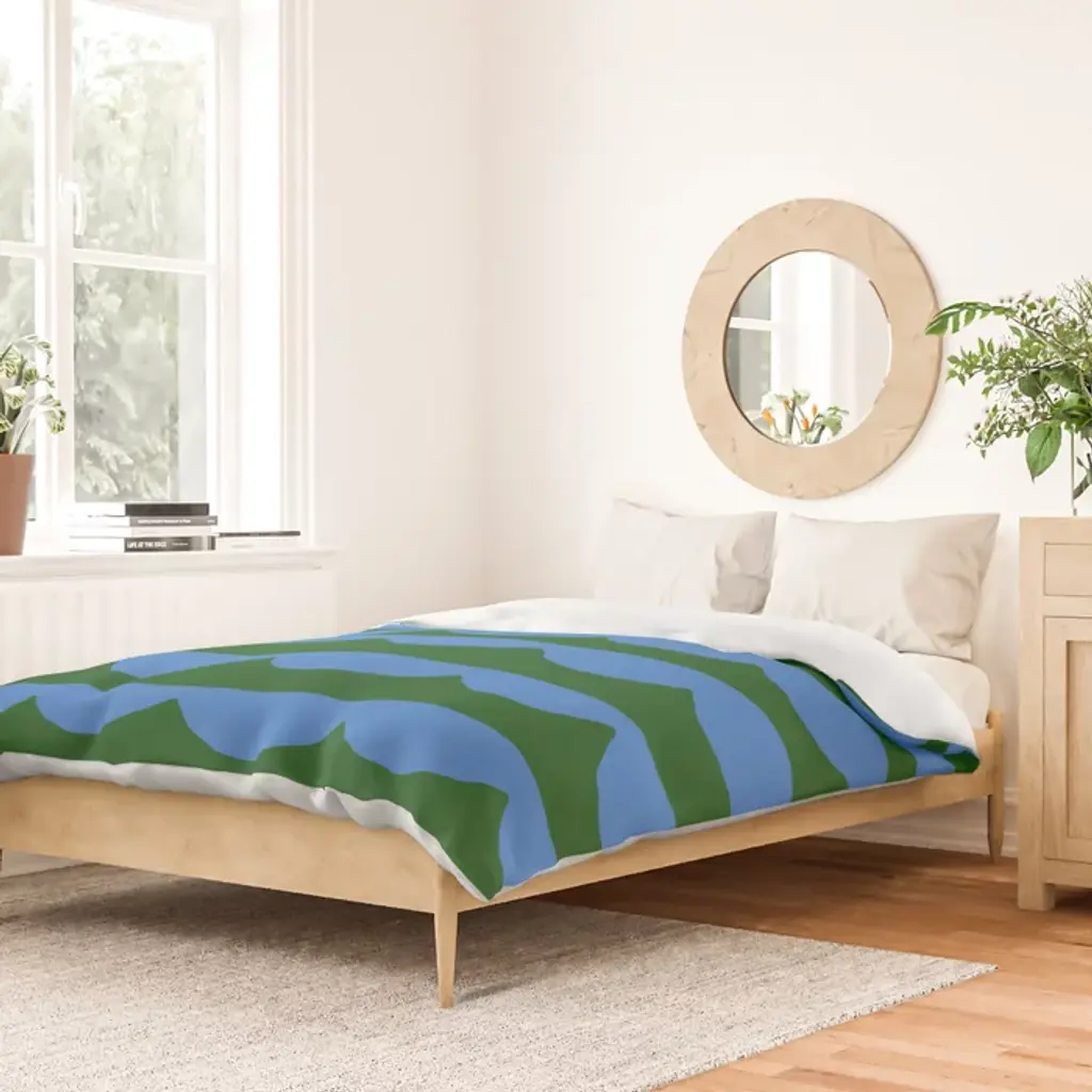 Thin Scalloped Line In Blue And Green Duvet Cover