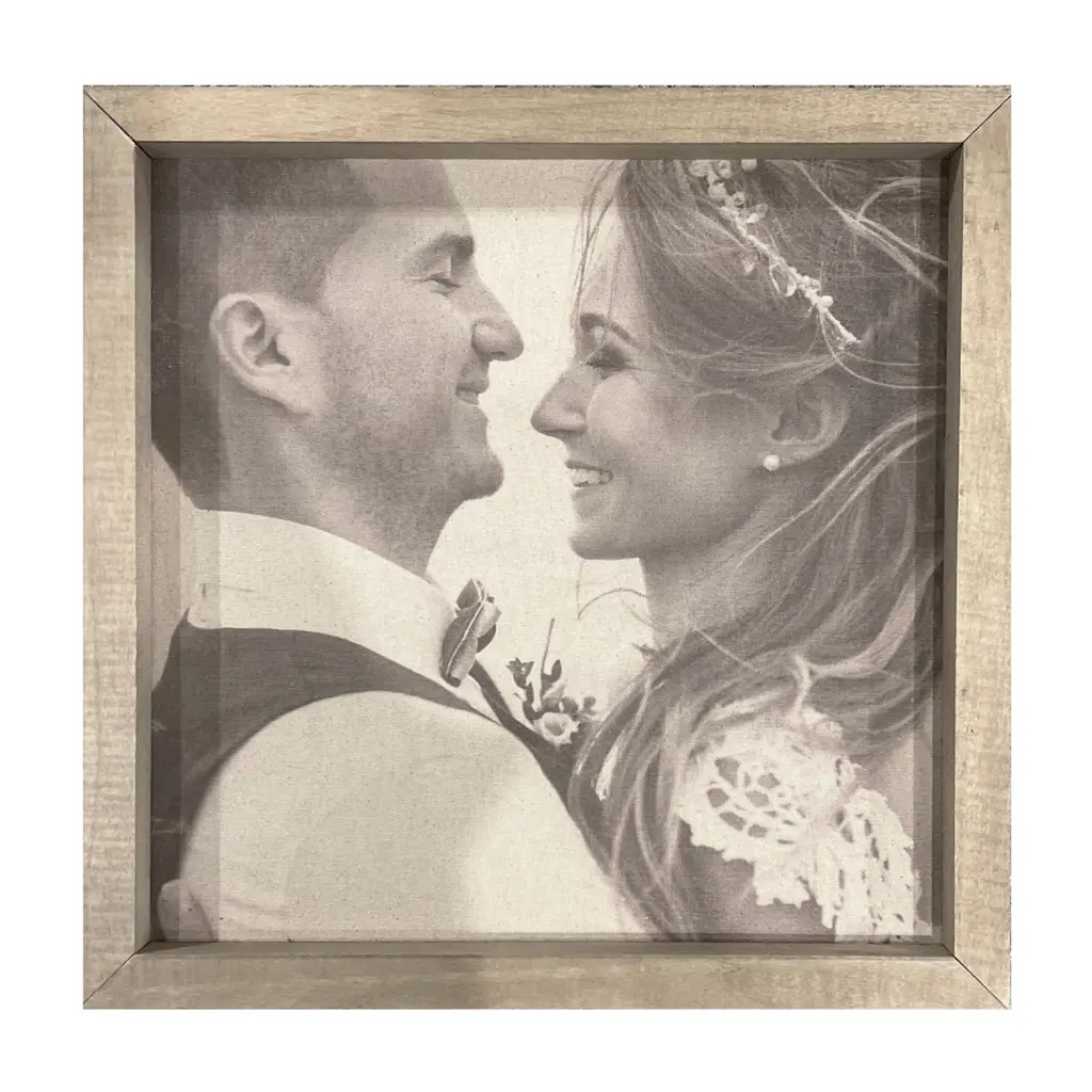 Display your favorite photographed memories and create a truly unique gallery wall with these beautiful frames, constructed of natural wood. Completely custom, your selected image is printed onto a natural canvas panel giving an aged patina feel. We can't wait to see what you create! Available in three sizes and two washes.