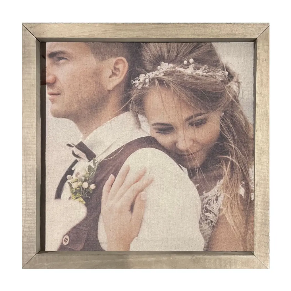 Display your favorite photographed memories and create a truly unique gallery wall with these beautiful frames, constructed of natural wood. Completely custom, your selected image is printed onto a natural canvas panel giving an aged patina feel. We can't wait to see what you create! Available in three sizes and two washes.
