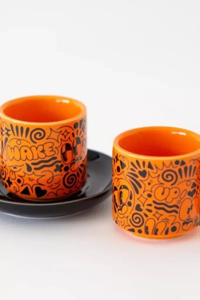 Hattie Stewart infuses a delightful playfulness into your everyday routine. With her limitless doodling style, this charming set of espresso cups is the perfect way to jumpstart your day. About the artist Based in London, artist Hattie Stewart is known for her bold, vibrant creations that blur the lines between art and play. With a unique, cartoon-infused style, she reimagines pop culture, infusing it with humor and vibrant surrealism across the realms of art, design, and fashion. Hattie’s colourful chaos comes to life through whimsical objects that transform the everyday into pure joy, now ready to brighten your home, thanks to Third Drawer Down. Having collaborated with brands like Gucci, Adidas, and Swatch, and exhibited globally, her work consistently invites double-takes and sparks smiles. **Content + Care** \- Ceramic \- Hand Wash Preferred \- Gift Packaged **Size + Fit** \- 5 x 5 cm / 2 x 2' \- Capacity 60ml \- These products are handmade. There may be minor imperfections. This is not considered a fault, think of it as a one-of-a-kind beauty mark