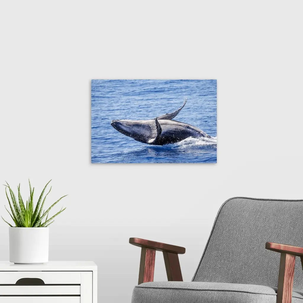 This Breaching Humpback Whale Calf Was Born In The 2022 Season Off Maui, Hawaii