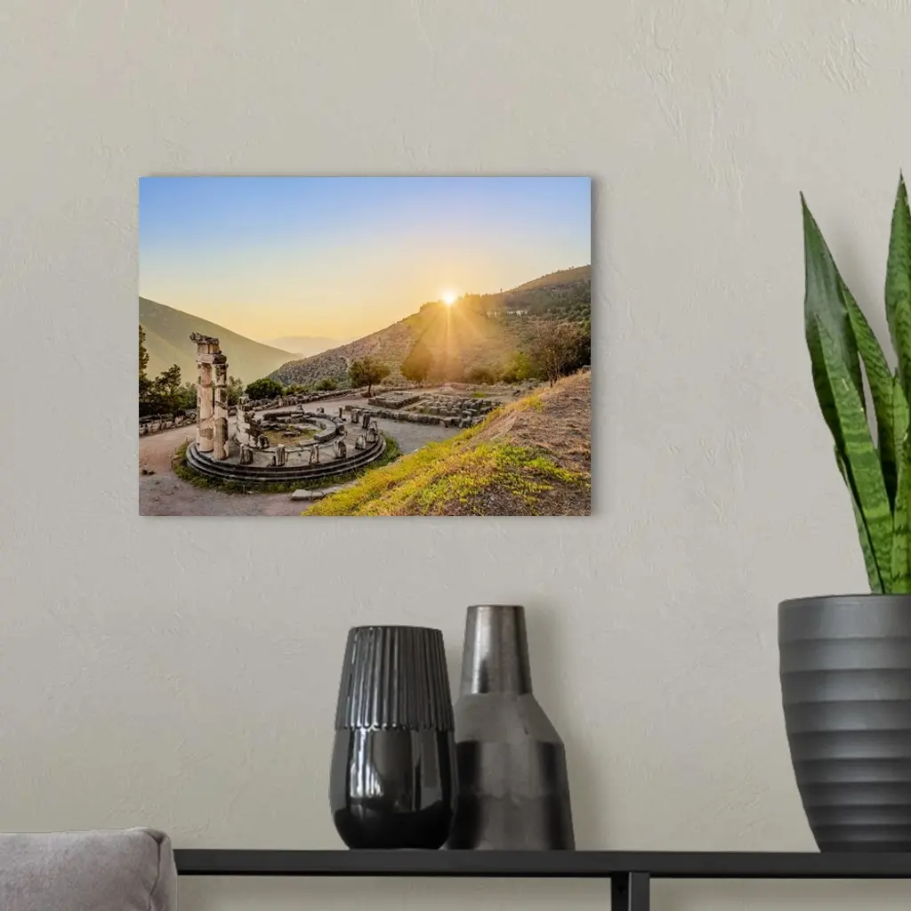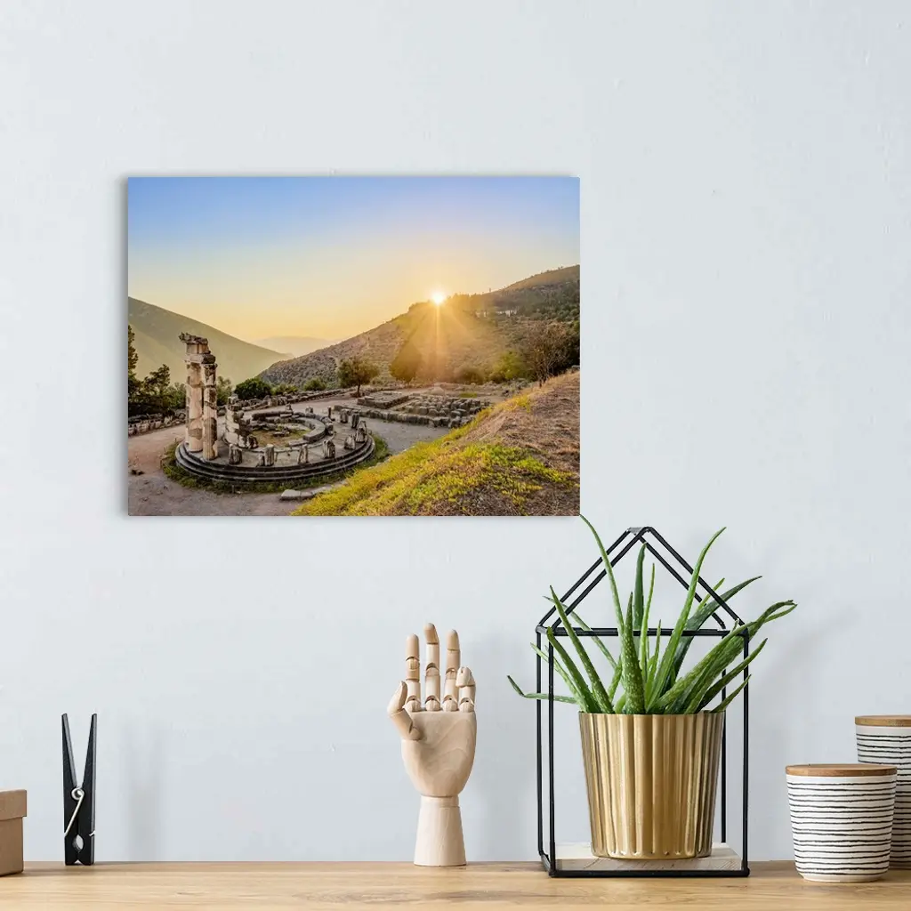 Tholos of Delphi, Temple of Athena Pronaia, sunset, Delphi, Phocis, Greece