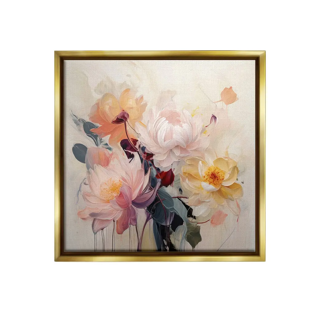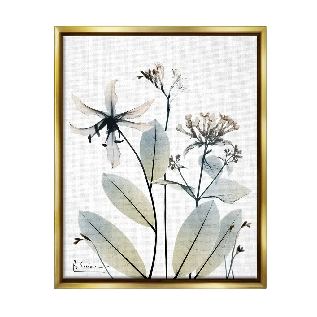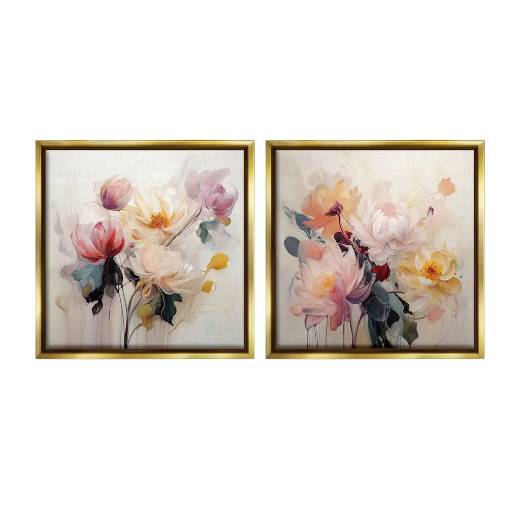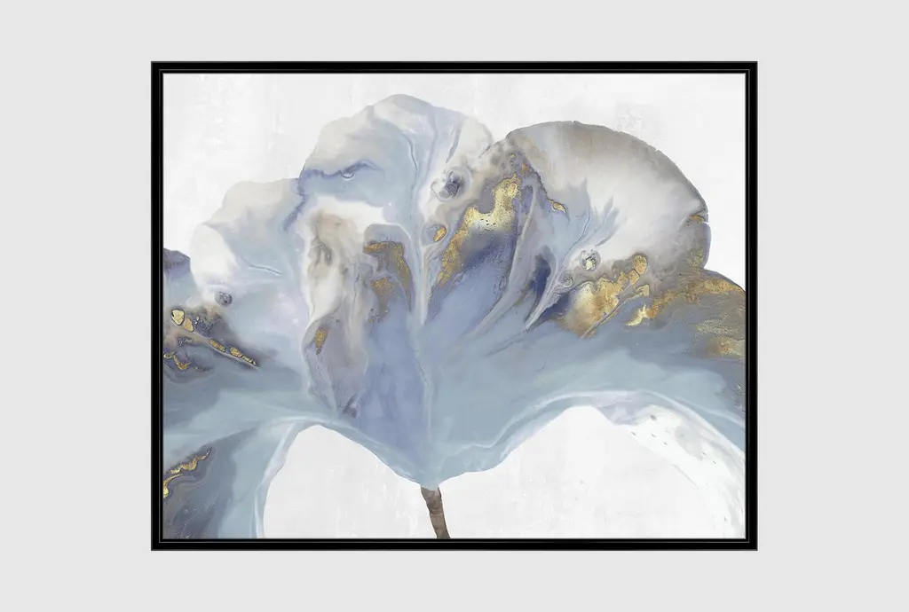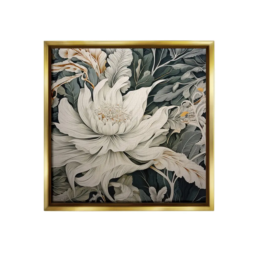 Pristine Petals by artist Thomas Hazlehurst is a magnificent triptych of giclee prints on canvas, coming together to depict gorgeous white florals. The beautiful flower is embellished with traces of both gold leaf and silver leaf, elevating the look with touches of opulence. The panels are held within gold floater frames that may only be displayed in a vertical orientation.