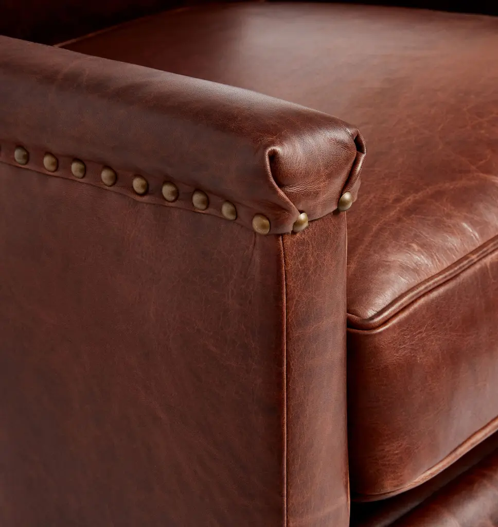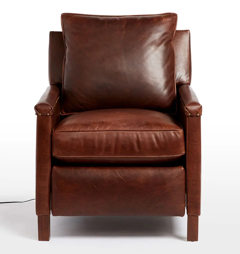 With a streamlined silhouette and elegant nailhead detailing on the arms, the Thorp recliner combines classic library style with contemporary design.
