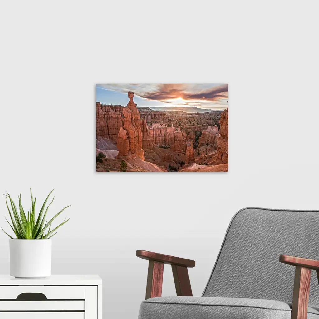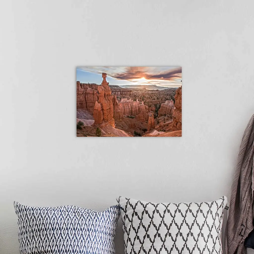 Cloudy skies over the hoodoos, including the Thor's Hammer structure in Bryce Canyon National Park, Utah.