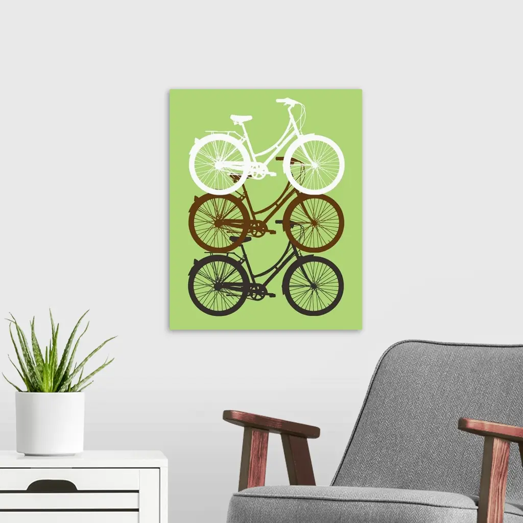 Three Bikes on Green wall art for home and office decor. Discover canvas art prints, photos, mural, big canvas art and framed wall art in GreatBigCanvas.com's varied collections.