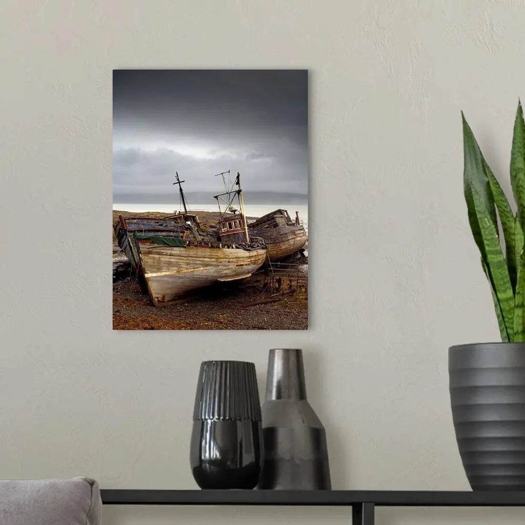 Three Boats On Shore, Island Of Mull, Scotland wall art for home and office decor. Discover canvas art prints, photos, mural, big canvas art and framed wall art in GreatBigCanvas.com's varied collections.