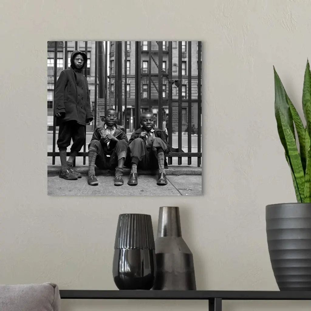 Three Boys On The Sidewalk In Harlem, New York City, 1943