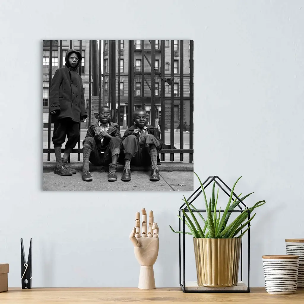 Three boys on the sidewalk in Harlem, New York City. Photograph by Gordon Parks, 1943