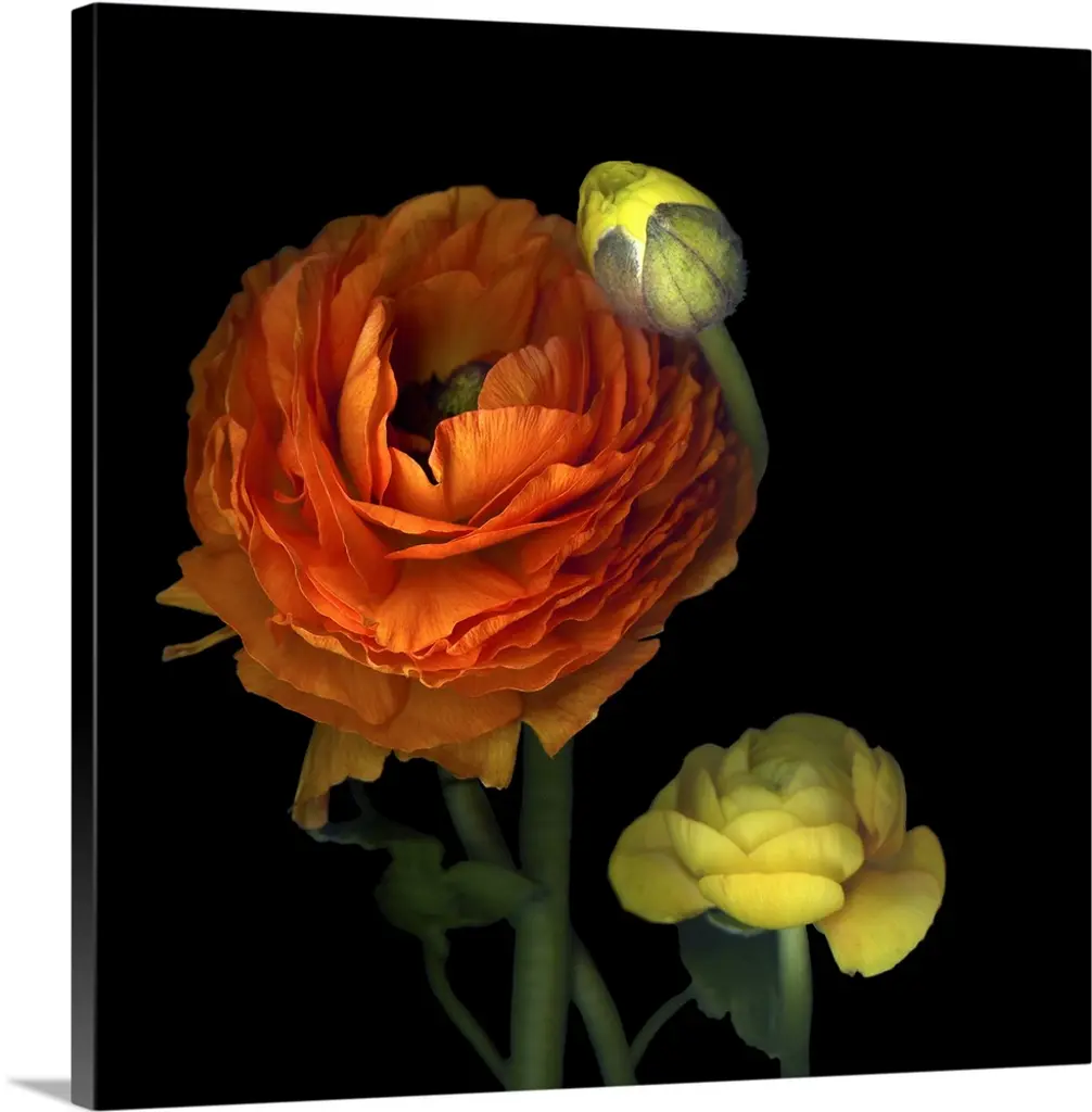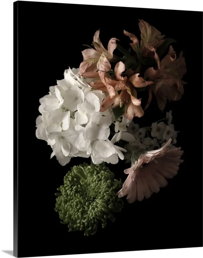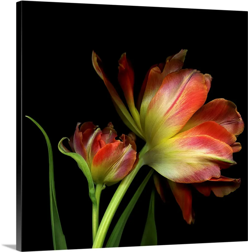 A photograph of colorful flowers against a black background.