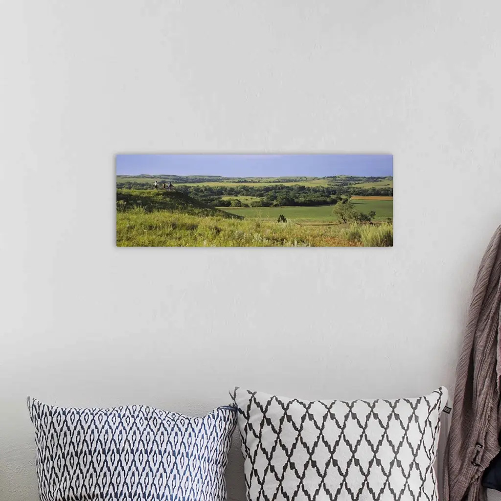 Three mountain bikers on a hill, Kansas wall art for home and office decor. Discover canvas art prints, photos, mural, big canvas art and framed wall art in GreatBigCanvas.com's varied collections.