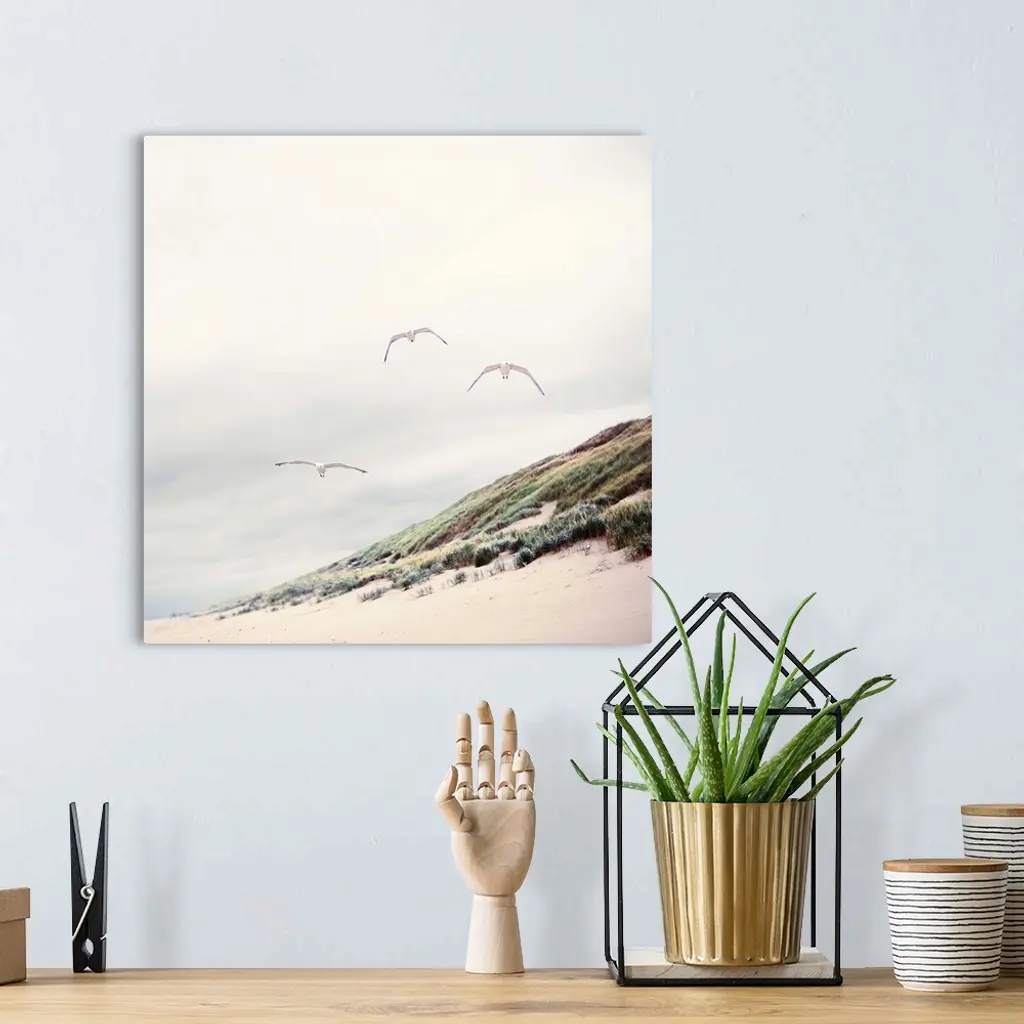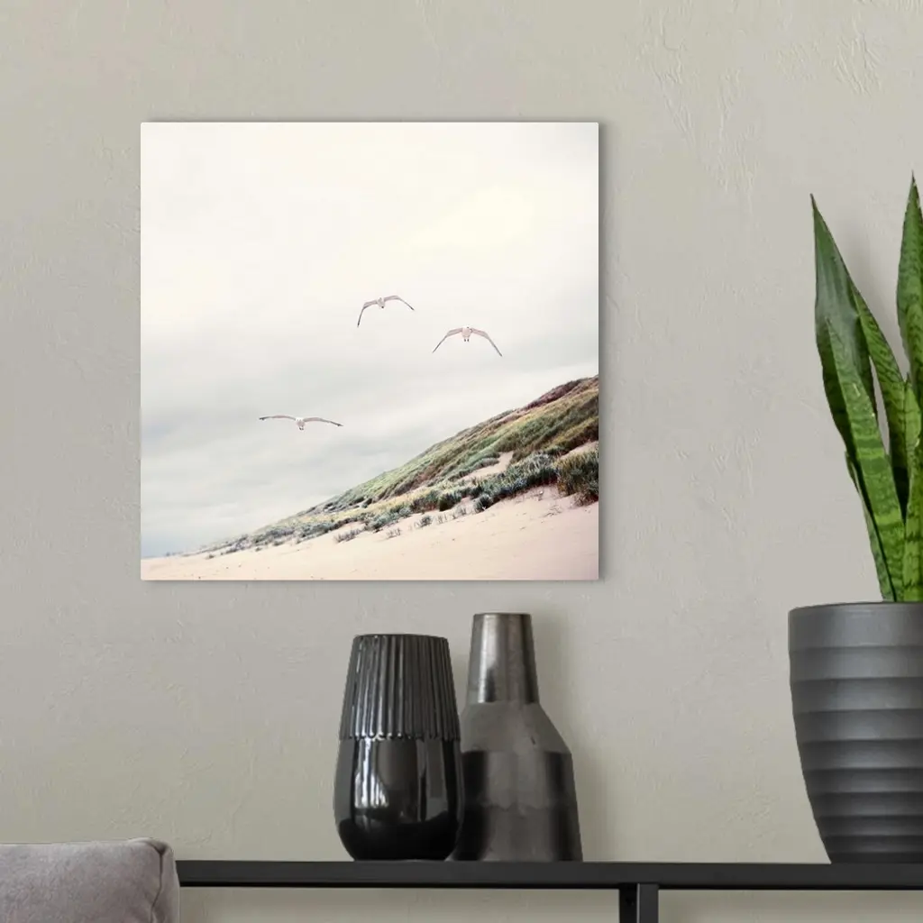 Three seagulls at Dutch beach with dune and marram grass. wall art for home and office decor. Discover canvas art prints, photos, mural, big canvas art and framed wall art in GreatBigCanvas.com's varied collections.