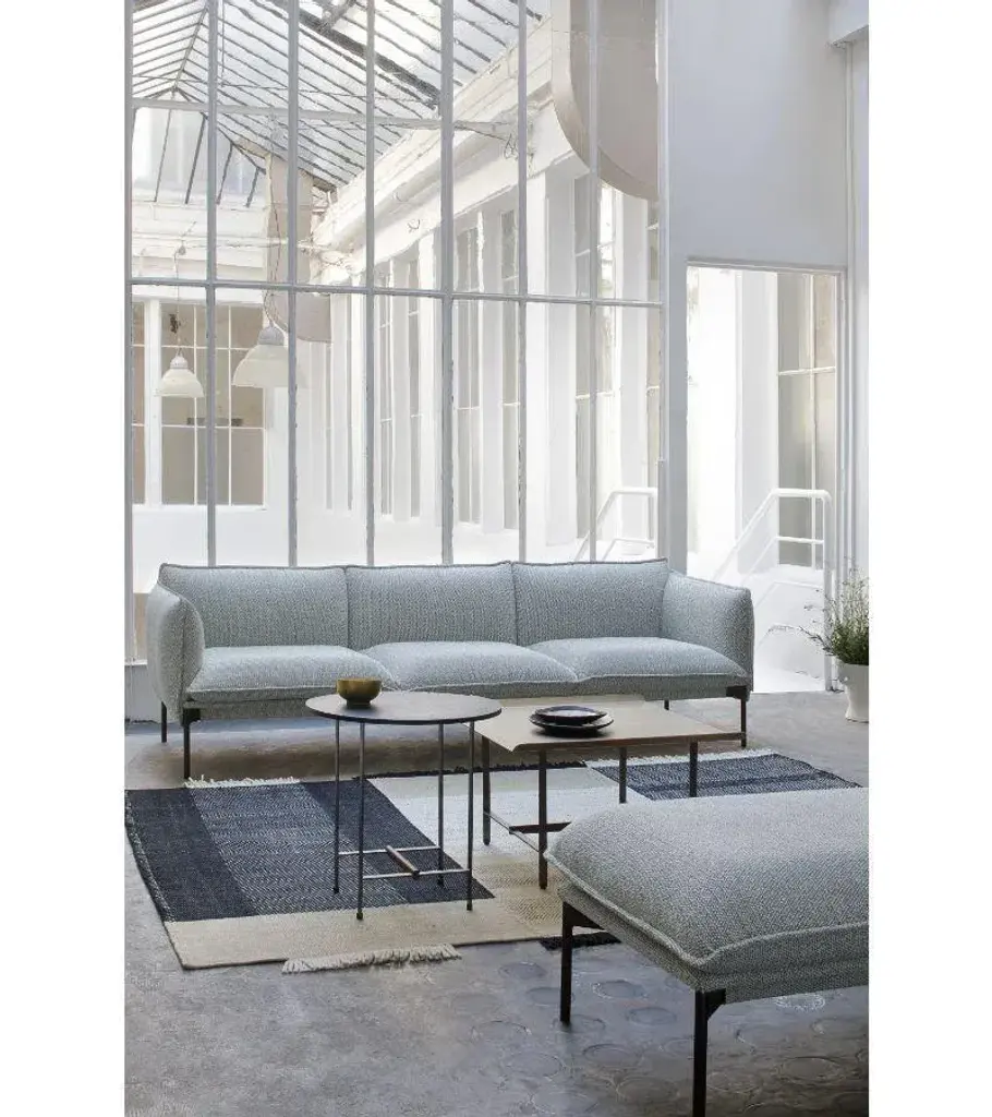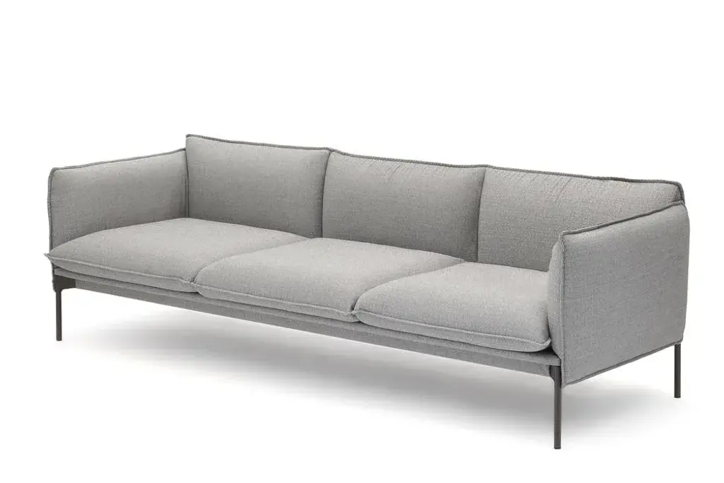 3 seat Palm Springs sofa by Anderssen & Voll Materials: Polyurethane foam of different densities, covered with fabric or leather. Base in bronze lacquered metal. Technique: Lacquered metal, upholstered in fabric. Dimensions: D 83 x W 230 x H 69 cm