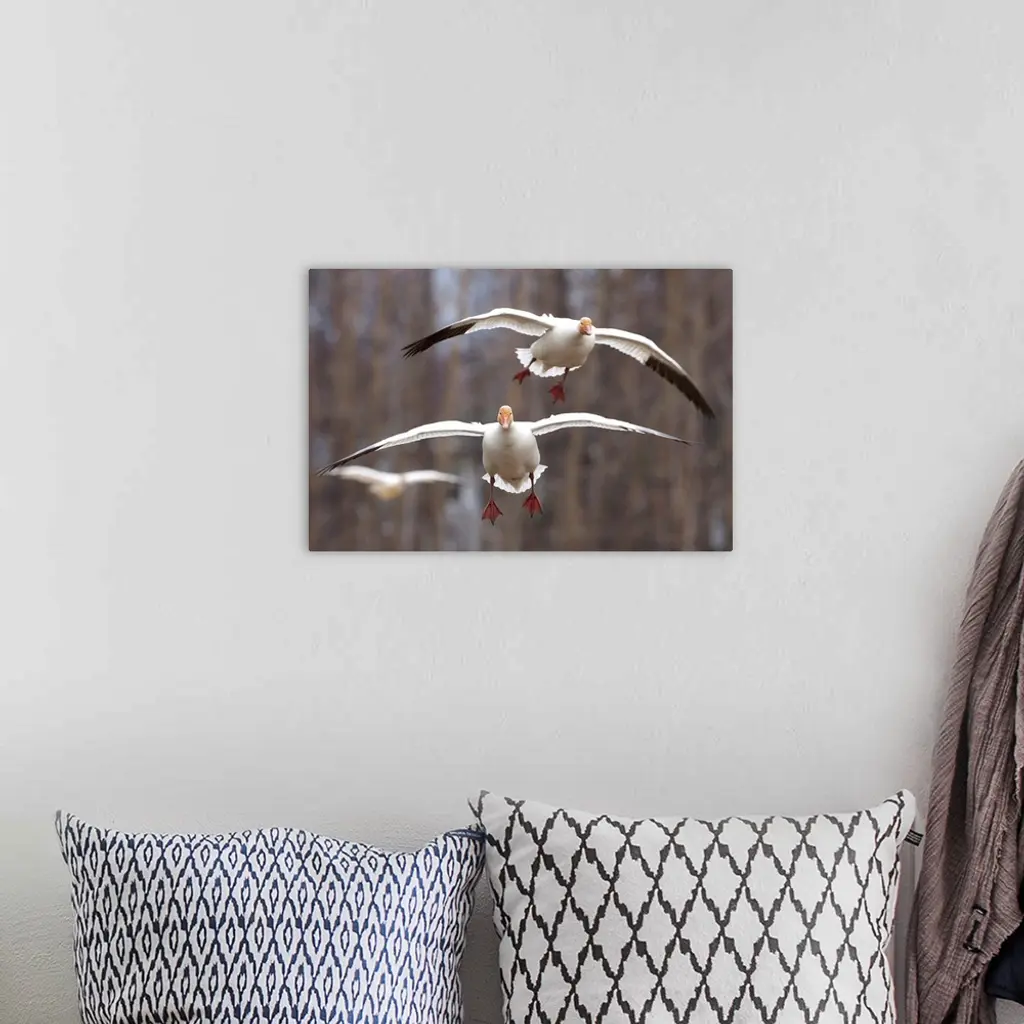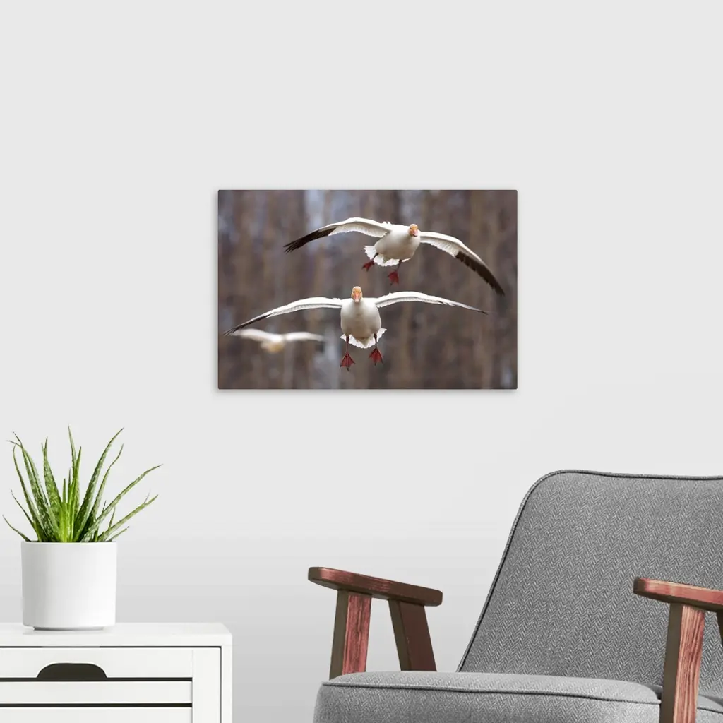Three Snow Geese In Flight In The Matanuska Valley, Southcentral Alaska wall art for home and office decor. Discover canvas art prints, photos, mural, big canvas art and framed wall art in GreatBigCanvas.com's varied collections.