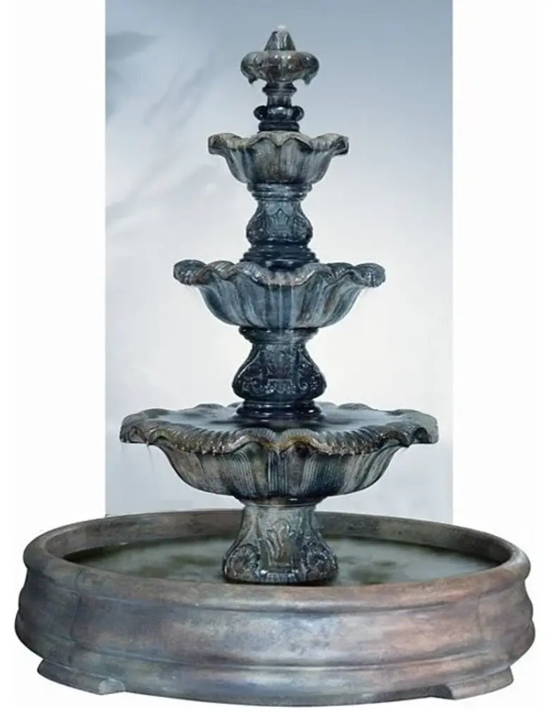 Add flair and sophistication to your outdoor garden with the lovely Three-Tier Renaissance Fountain in Grando Pool. This one of a kind fountain has all the perfect qualities you"™re looking for to impress your friends and create an ambiance of peace for your family. It"™s made of very refined cast stone material and will last for a lifetime.Includes pump1 year manufacturer warrantyHeight: 70 in.Diameter: 60 in.Weight: 1,160 lbs.Color shown on Fountain: Relic NebbiaMultiple Colors AvailableMaterial: Cast Stone• The finish/stain is hand applied and can vary from what is shown in the color sample