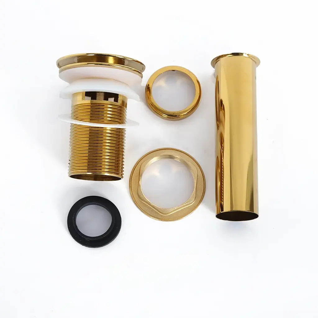 Ti-Pvd Pop Up Bathroom Sinks Drain Gold Solid Brass With Overflow