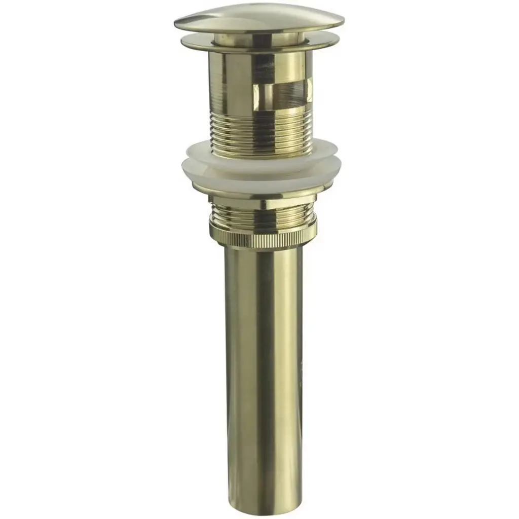 Add the finishing touch to your bathroom with a new pop-up drain. With smooth lines and sturdy construction, it provides everyday efficiency with style. This pop up drain is designed to work with any bathroom sinks with overflow. Convenient and user-friendly, you just need to press the top of the drain to close and another press to open. In addition, this practical fixture contains a smooth mechanism of high quality, which ensures its tight seal function. Finished in glistening gold, it pairs with your gold plated faucet for extra elegance.