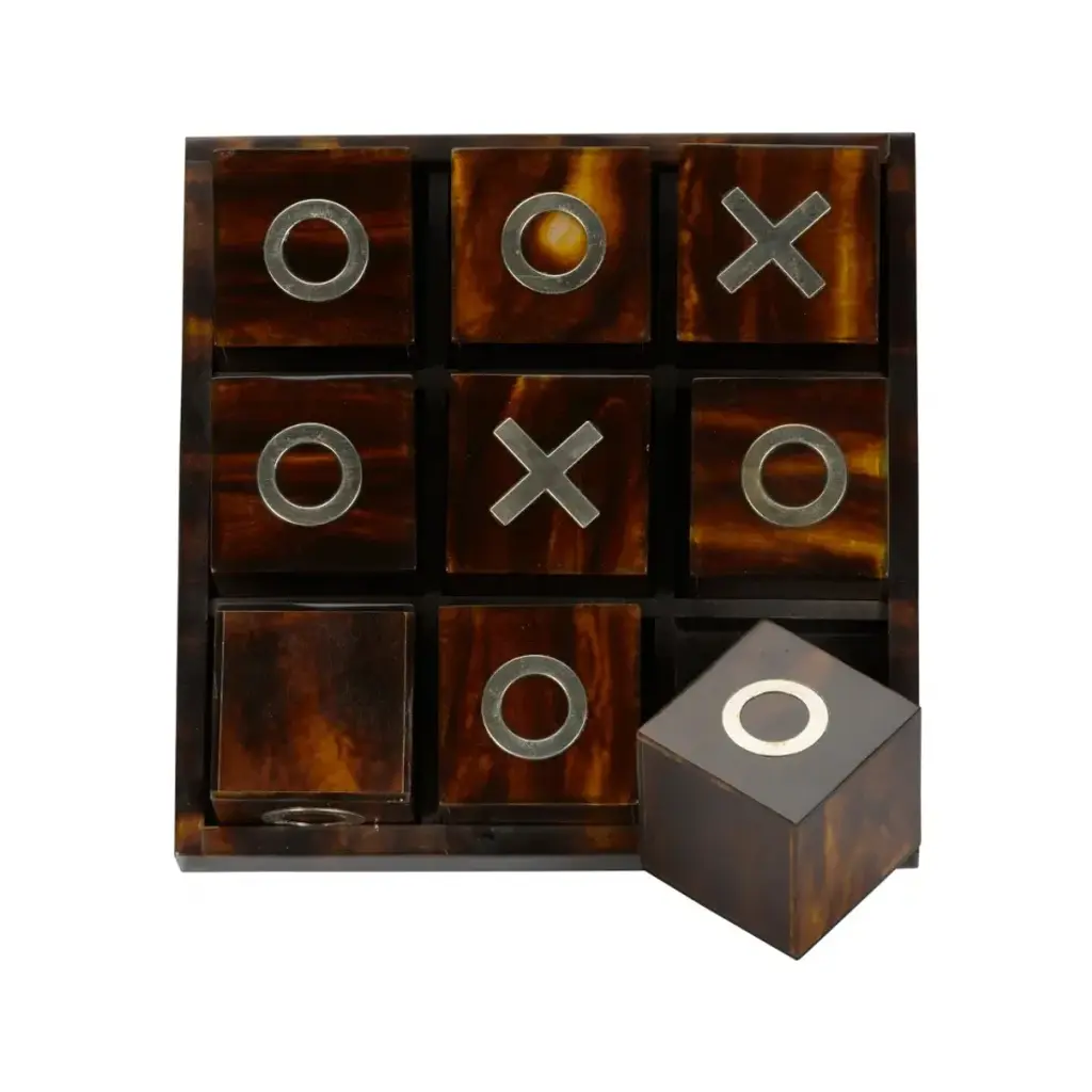This Tic Tac Toe game features a stylish and sophisticated design, with a sleek board and polished game pieces that mimic the warm hues of tortoise shell. This game combines classic fun with elegant aesthetics.