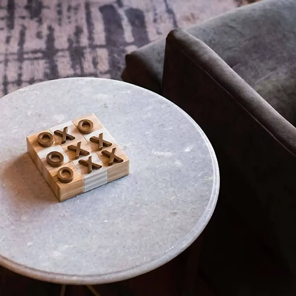 The Tic Tac Toe Flat Board With Brass Pieces from Regina Andrew elevates a childhood game into a distinguished design element. Crafted from bone, the board's surface presents a subtle checkered pattern, creating a refined playing field that doubles as a work of art. The brass X's and O's add a luxurious weight to each move. This set bridges generations, inviting nostalgic adults and curious children to engage in friendly competition. When not in use, it serves as an intriguing decorative piece.