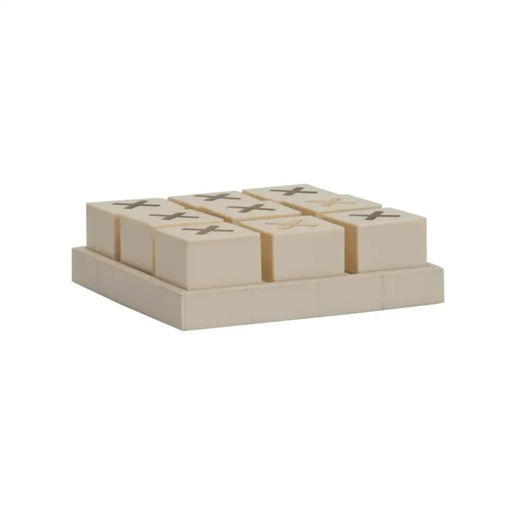 This Tic Tac Toe game features a stylish and sophisticated design, with a sleek board and polished game pieces that mimic a soft white hues. This game combines classic fun with elegant aesthetics.