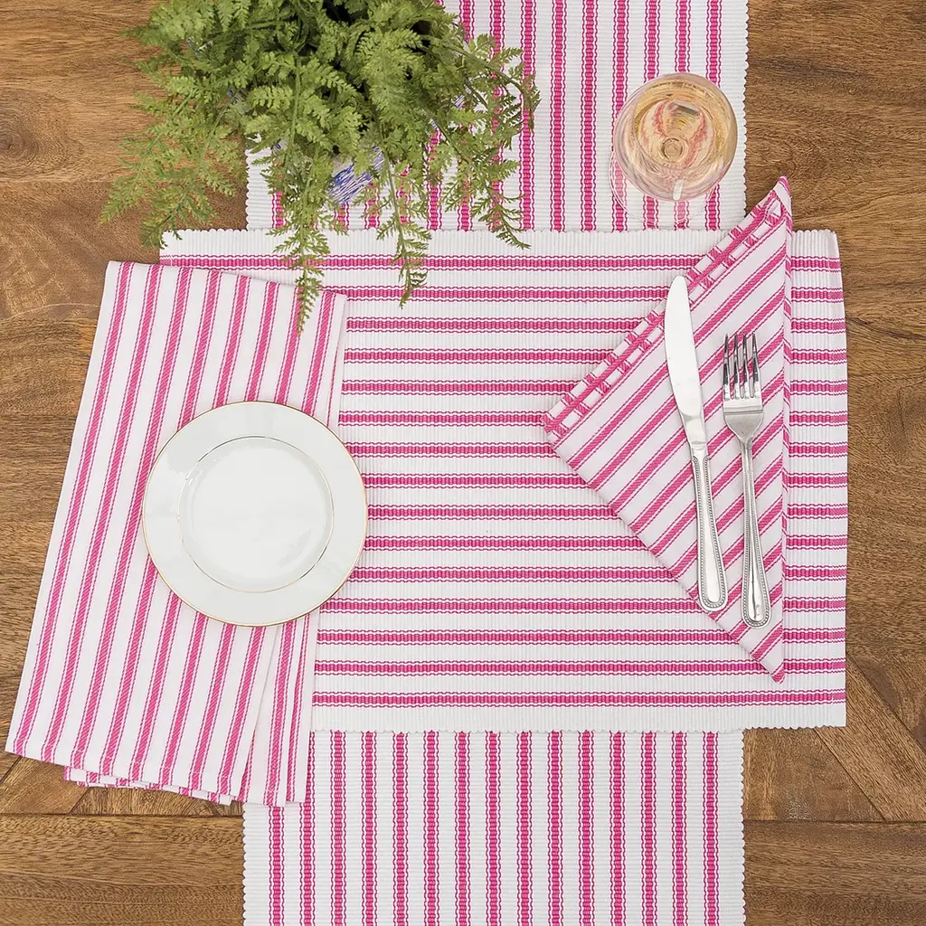 Create a warm, inviting table, full of endless styling possibilities, with the Ticking Stripe tabletop collection of placemats, table runners, and napkins from C&F Home. In a refreshing color ways, this versatile collection is perfect for mixing and matching, to create a unique style for every occasion. Mix and match with solids and other coordinating colors in our collections. Placemats and napkins available separately.Add the finishing touch to your tabletop with this charming woven cotton runner from C&F Home.A versatile hand crafted woven table runner, pair this striped napkin with coordinating accents and textiles for a elegant and sophisticated lookWoven from yarn dyed cotton