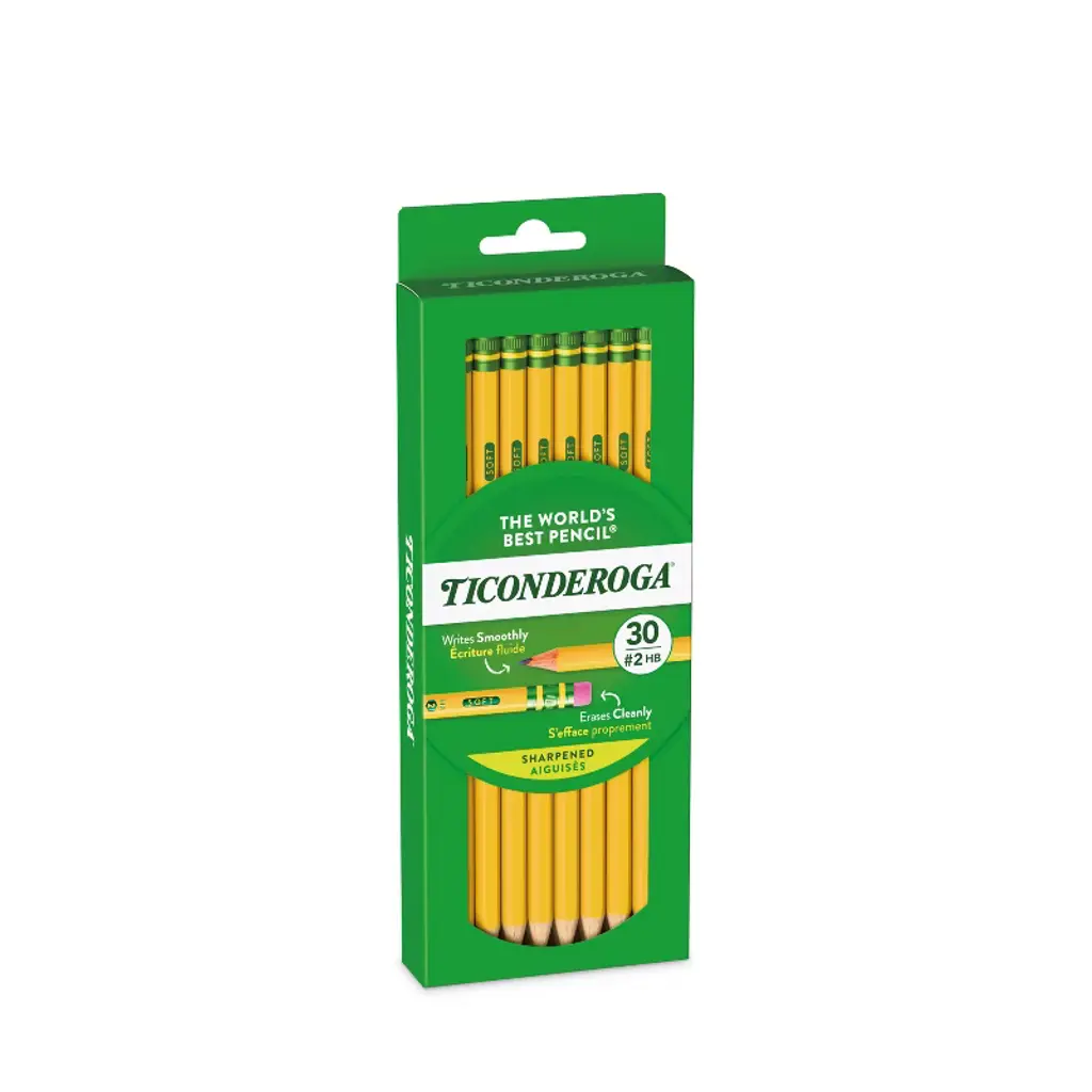 Ticonderoga 30ct Pencil Presharp Yellow: No. 2 Wood Cased Presharpened Pencils, 2.2mm Point, Stationery & Office Supplies