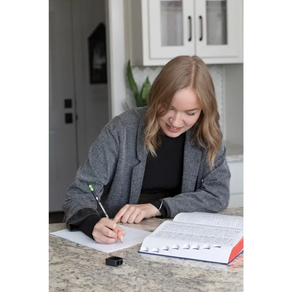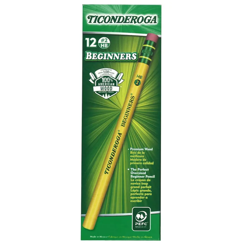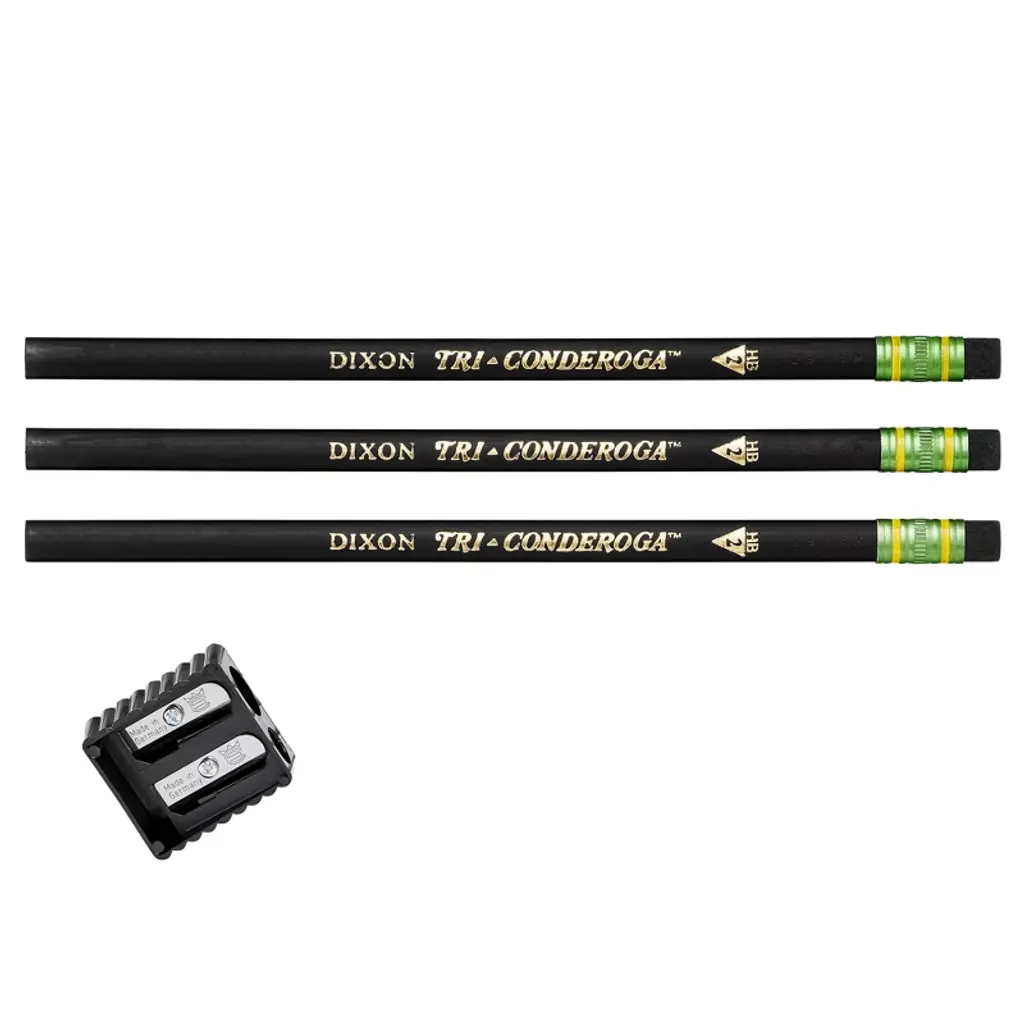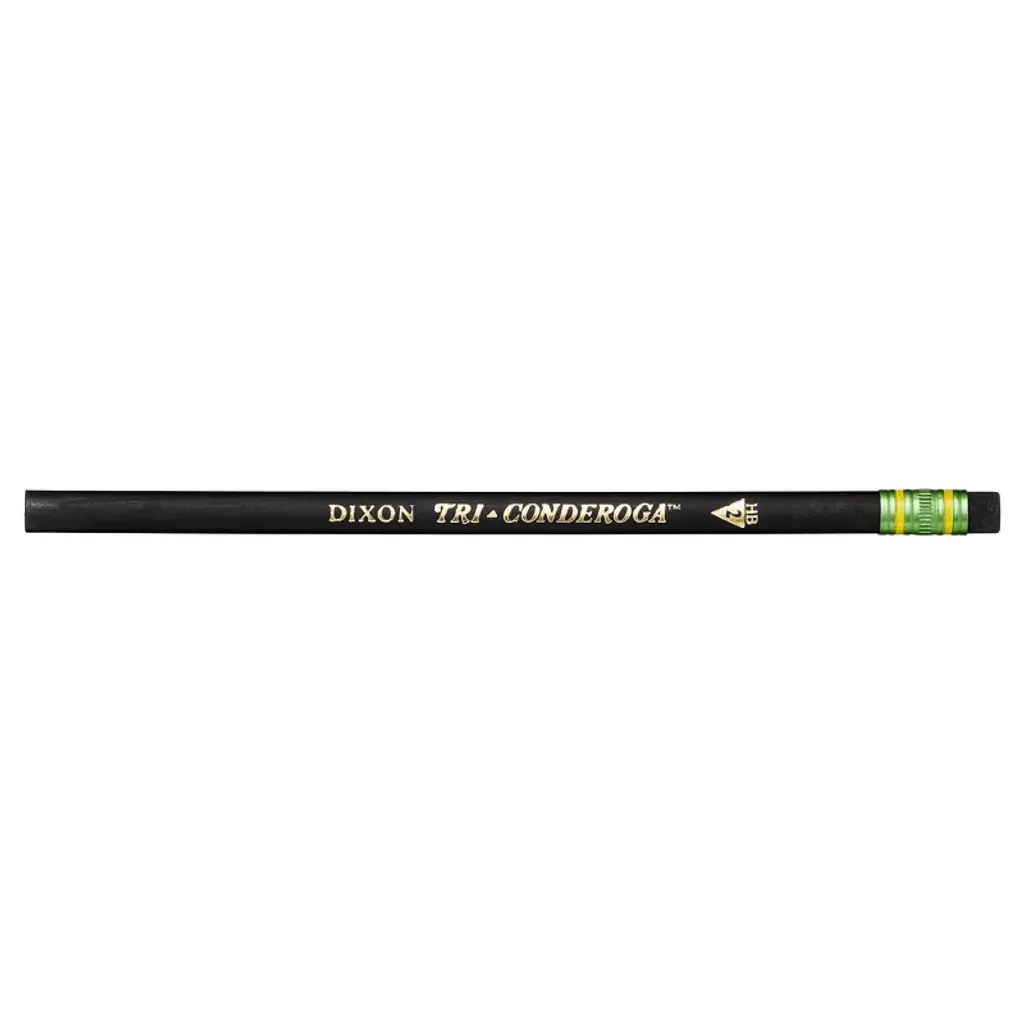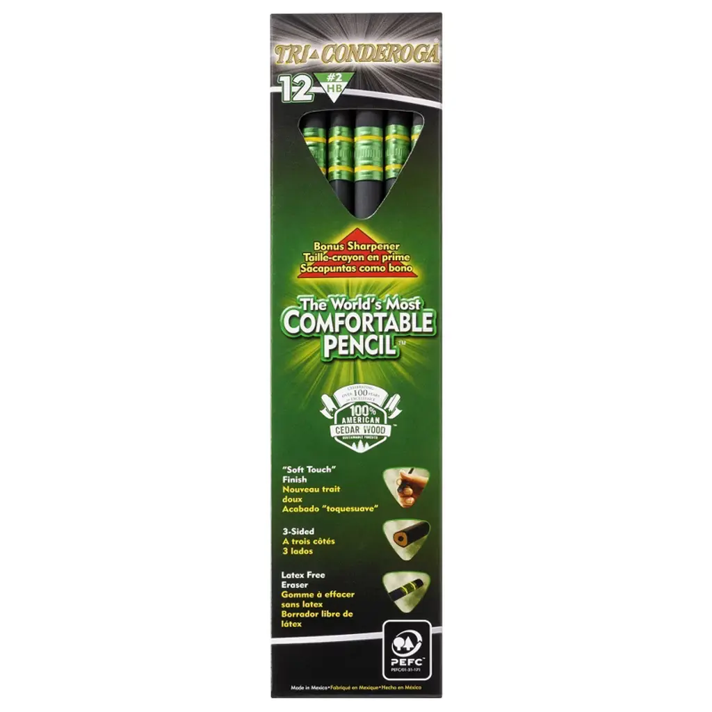 Ticonderoga® Tri-Conderoga™ 3-Sided Pencils with Sharpener, Pack of 12 | Tri-conderoga No. 2 pencil features a sleek, sophisticated, ergonomic design and Microban antimicrobial protection that lasts the lifetime of the product. Thicker diameter and unique "soft-touch" finish make the pencil more comfortable than the usual pencil. Triangular shape is designed for comfortable writing and keeps your fingers from cramping. Long-lasting, top quality, premium cedar wood allows easy sharpening with an exclusive graphite-core formula for smooth writing. Use quality eraser for clean smudge-free corrections. Pencil is PMA certified nontoxic. Each pack includes 12 pencils with bonus sharpener.