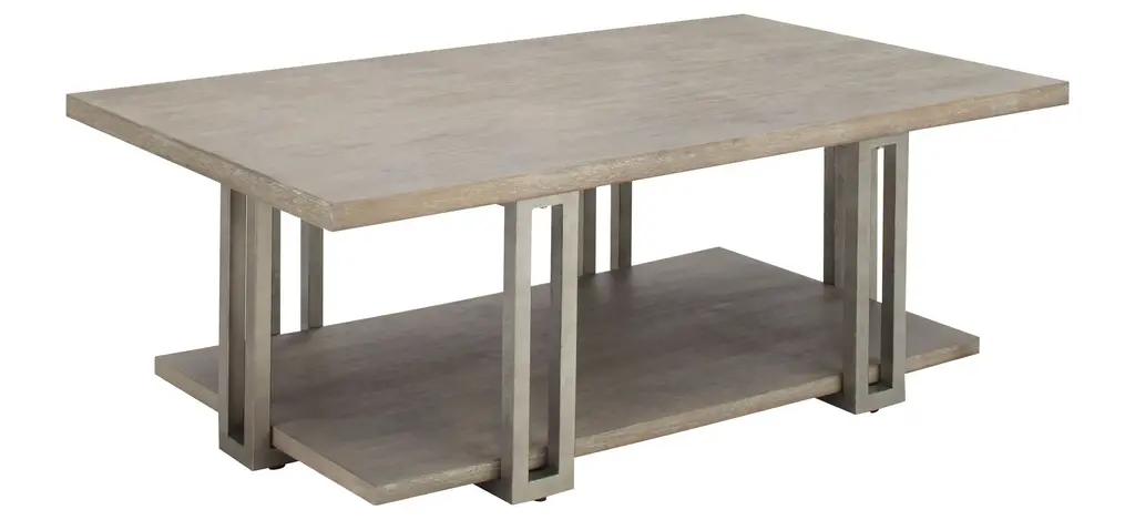 Talk about style! The Tiernan cocktail table adds a splash of contemporary elegance to any living space. Wood and metal textures worked into a geometric design create stunning visual interest.
