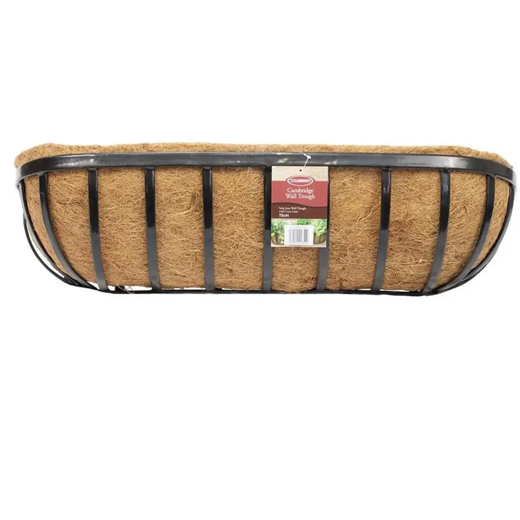 Enhance your garden or outdoor space with the Tierra Garden Cambridge Premium Wall Trough with Coco Liner. Designed with a sophisticated flattened slat styling that mimics a forged metal look, this wall trough boasts a durable black gloss finish, adding a touch of elegance and modern flair to any setting. Perfectly sized for positioning under windows or along walls, it provides an ideal solution for showcasing flowers, herbs, or plants in a space-saving design. The trough comes with a natural coco liner, which ensures proper drainage and encourages healthy plant growth while adding an eco-friendly touch to your gardening efforts. Available in three sizes—24", 30", and 36"—this premium wall trough is versatile enough to meet your specific planting needs. For a cohesive and stylish look, pair it with our Cambridge Hanging Baskets, creating a beautifully coordinated display that enhances any exterior. Dimensions: 24" Trough: 24"L x 7"W x 7"H, 3.7 lbs 30" Trough: 30"L x 8"W x 7"H, 5.2 lbs 36" Trough: 36"L x 8"W x 7"H, 6.8 lbs Elevate your outdoor décor with the premium design and durability of the Tierra Garden Cambridge Premium Wall Trough!