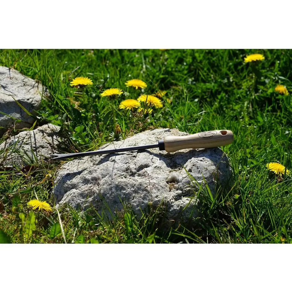 This Dandelion Weeder is more than just a tool; it's a cherished heirloom! Excellent for removing weeds, particularly dandelions, it is crafted from tempered boron steel with an ash hardwood handle. An ideal choice for the environmentally conscious, it eliminates the need for harmful herbicides. This tool comes with a lifetime guarantee! Dimensions: Head - 8.5"L x 0.75"W; Overall - 13.5"L; Weight - 0.5lbs.