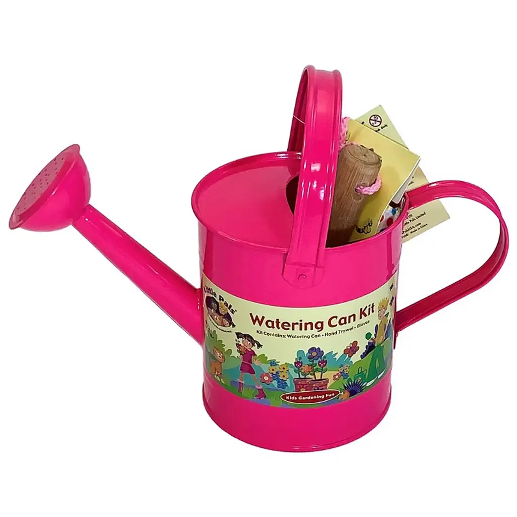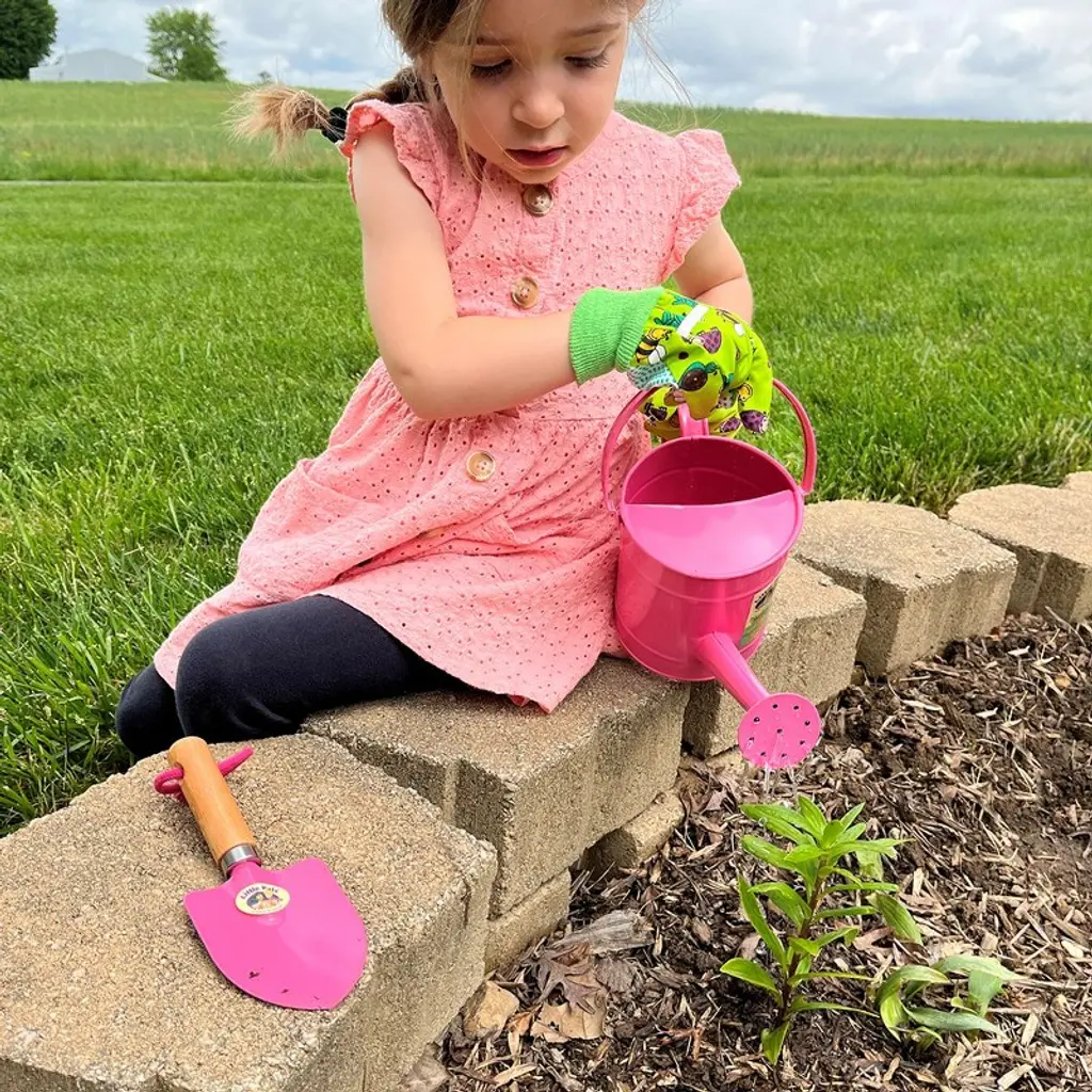 Engage children in gardening with this fun and simple set! It includes a metal watering can, gloves, and a hand trowel, all designed for small hands. The watering can also serves as convenient storage for the tools and gloves. Suitable for ages 3 to 10. Dimensions: 12.5"L x 5.5"W x 8.5"H; Weight: 0.9lbs.
