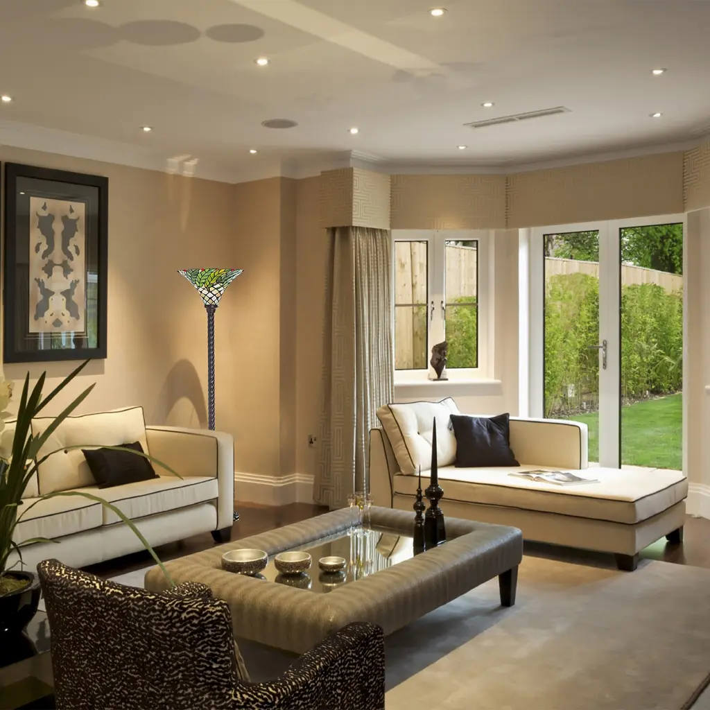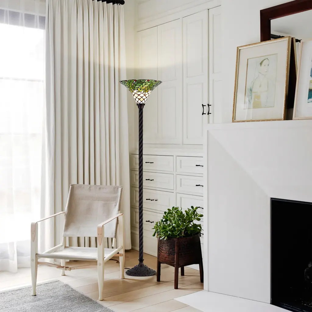 Tiffany-Style Green Leaf Torchiere Lamp - Green