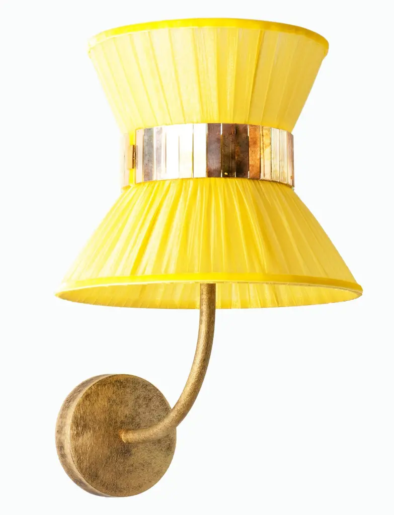 Tiffany Wall Bracket 23 Lemon Silk, Antiqued Brass, Silvered Glass