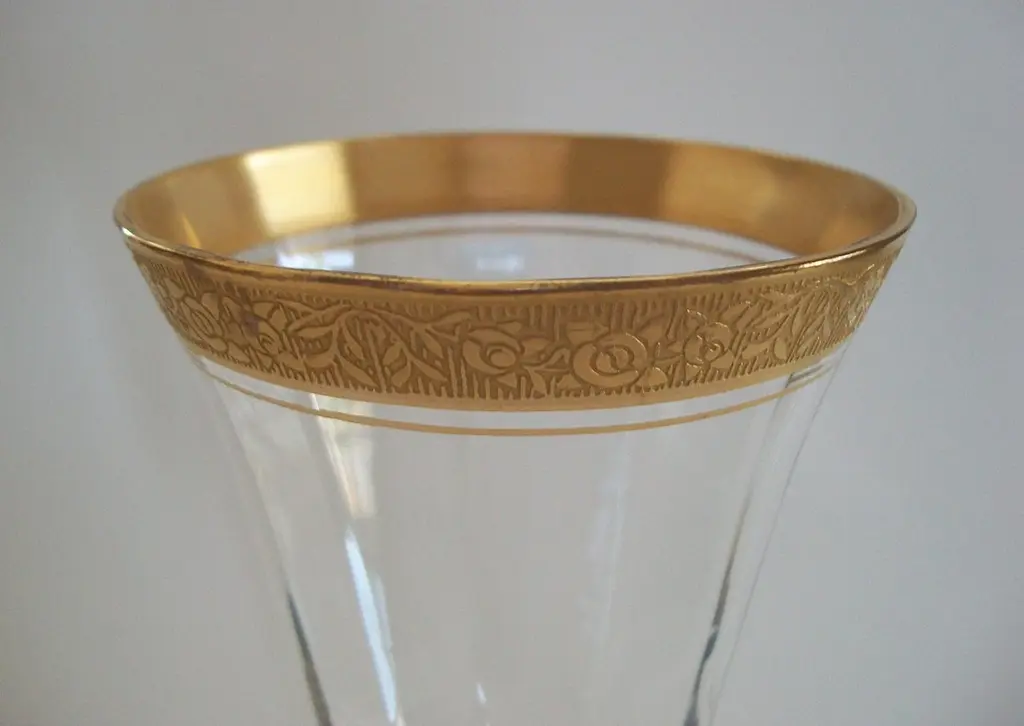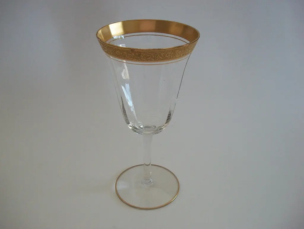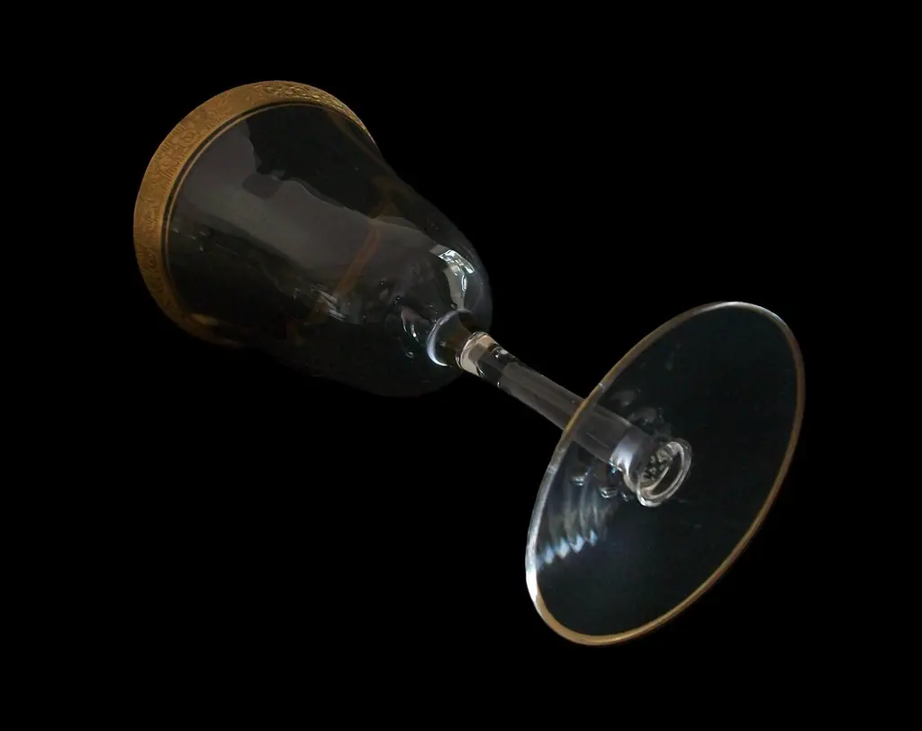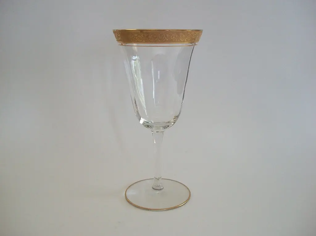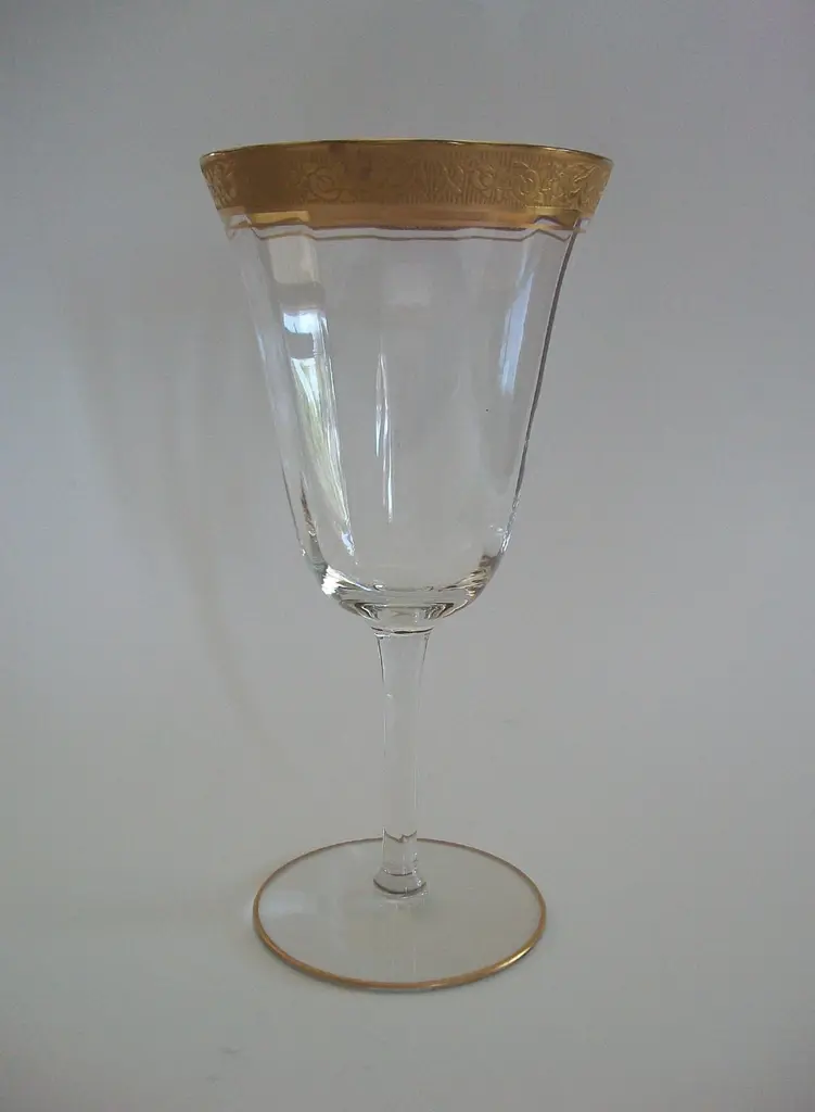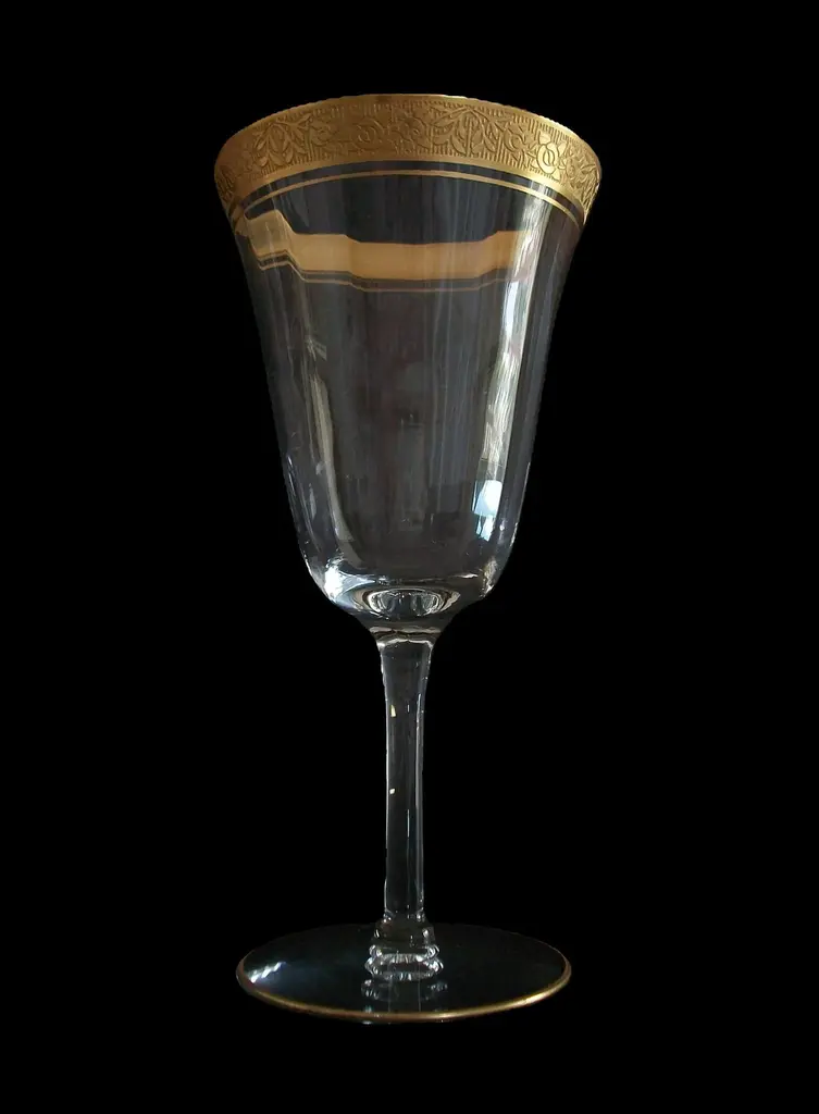 Tiffin Glass - Crystal Wine/water Glass - Etched Gold Rim - U.s. - Circa 1950's