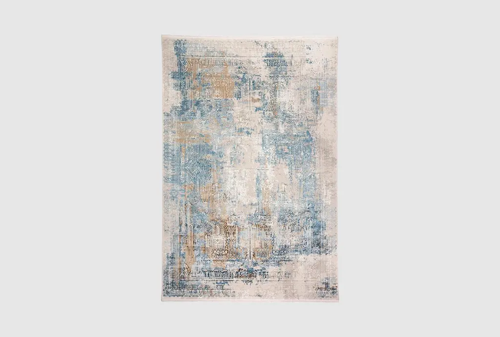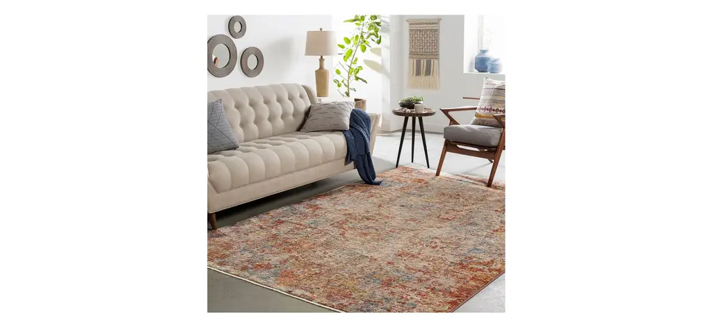 Characterized by a riveting rust, blue and cream palette, the Tiger Lily Rug adds a soft, contemporary touch to your home. This modern, machine woven rug is perfectly suited for a modern setting.