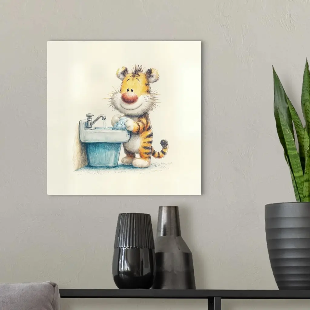 Tiger Washing Hands wall art for home and office decor. Discover canvas art prints, photos, mural, big canvas art and framed wall art in GreatBigCanvas.com's varied collections.