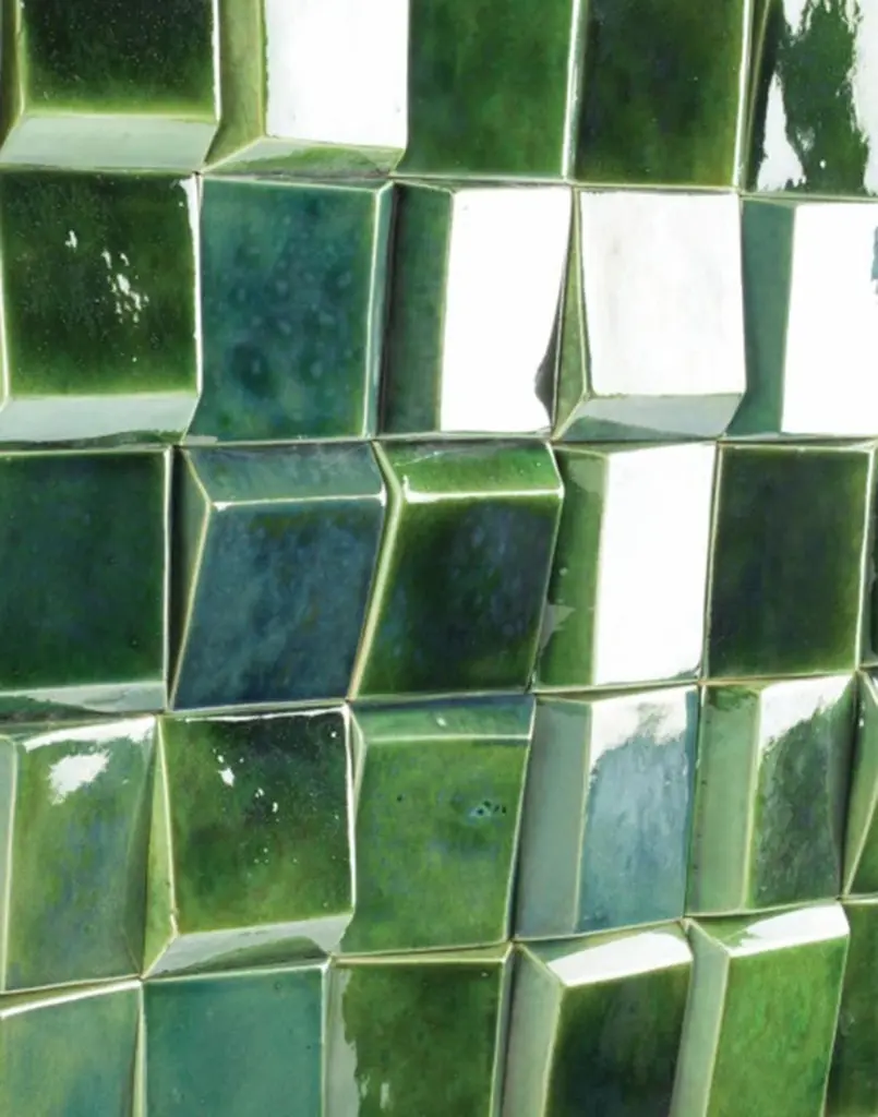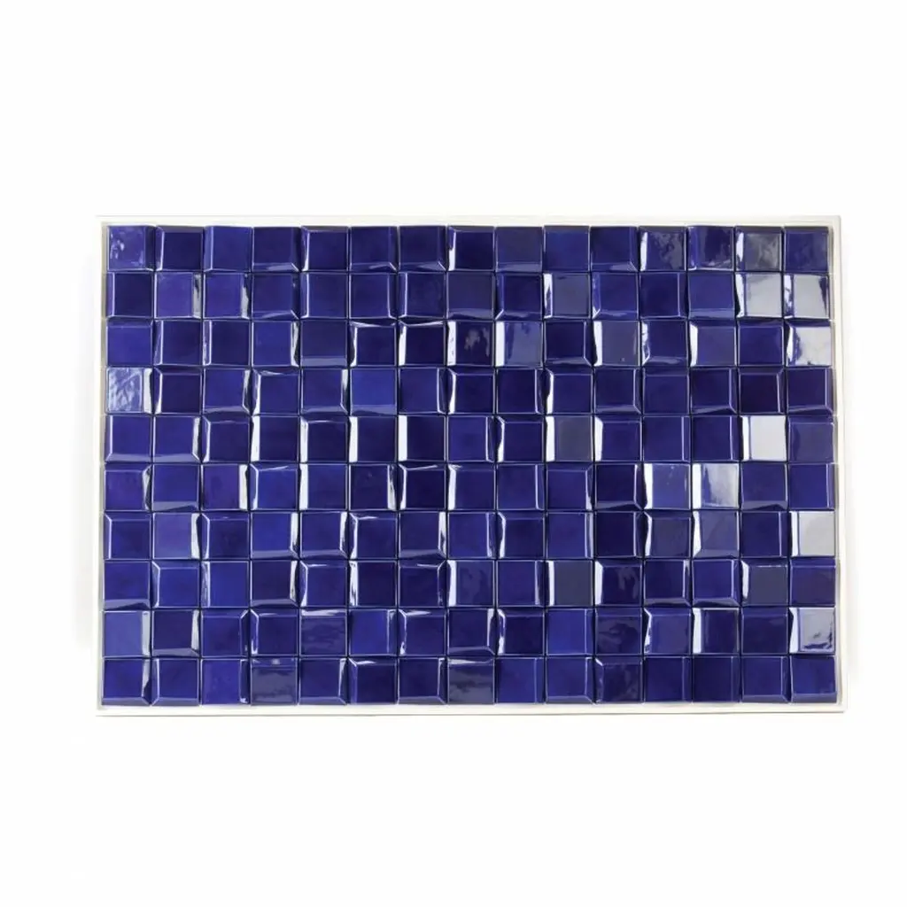 This handmade decorative tile panel combines the traditional Portuguese faience tile making techniques with a modern approach of shapes and color, resulting in a very visually impacting piece, which will bring life to any wall and for sure never going out of style. Made to Order.