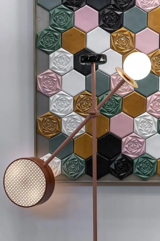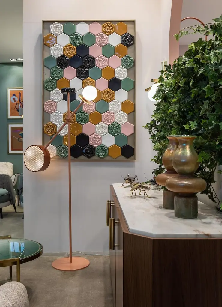 This handmade decorative tile panel combines the traditional Portuguese faience tile making techniques with a modern approach of shapes and color, resulting in a very visually impacting piece, which will bring life to any wall and for sure never going out of style. Made to Order.
