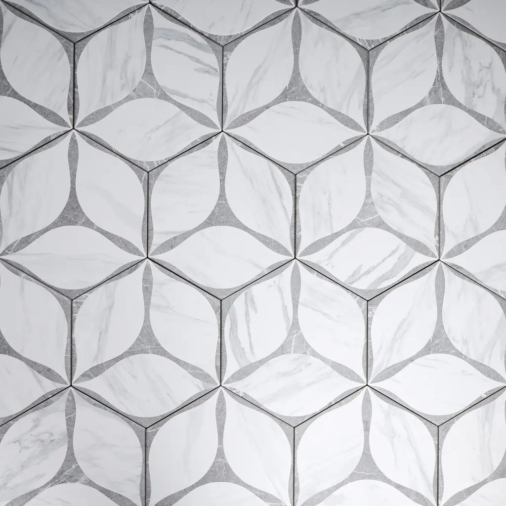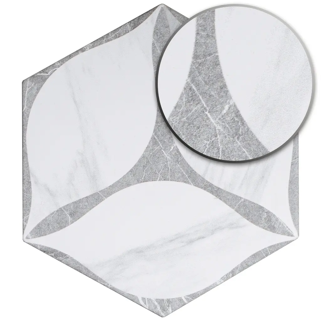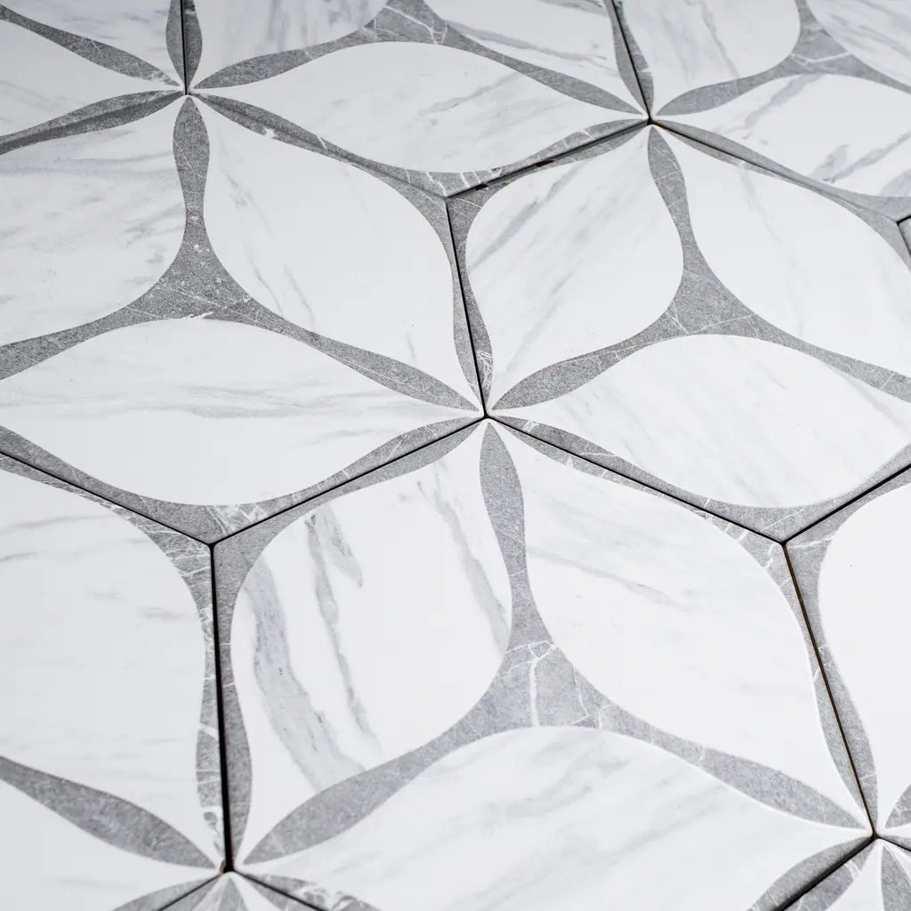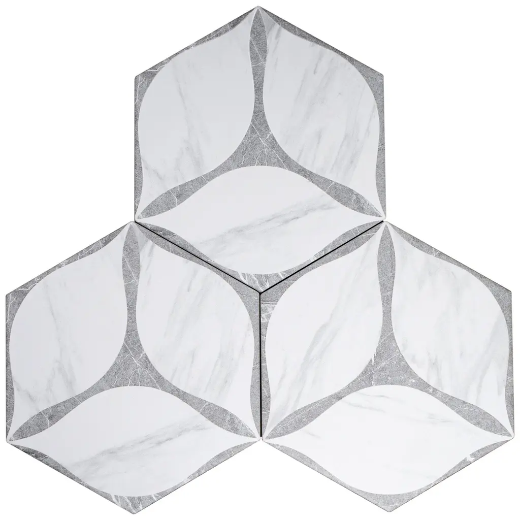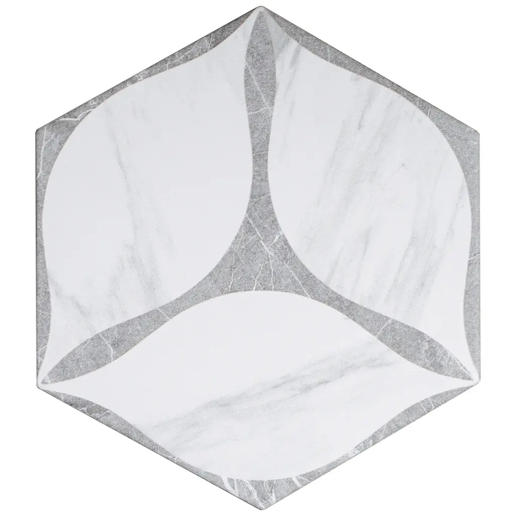 Elevate your home with TileGen Corola 8" x 9" Porcelain Patterned Wall & Floor Tile in Grey. The matte marble look design exudes sophistication and transforms any space into a magnificent haven. The hexagon-shaped tiles allow for beautiful layouts and mixing and matching with other colors. Low-maintenance and easy to clean, this high-quality porcelain tile is perfect for your living room, kitchen, or bathroom.Features:Details: