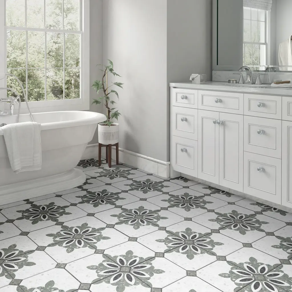 Tilegen. Corola 8" X 9" Porcelain Patterned In Grey Wall & Floor Tile (24 Tiles/9.05 Sqft.) - Case