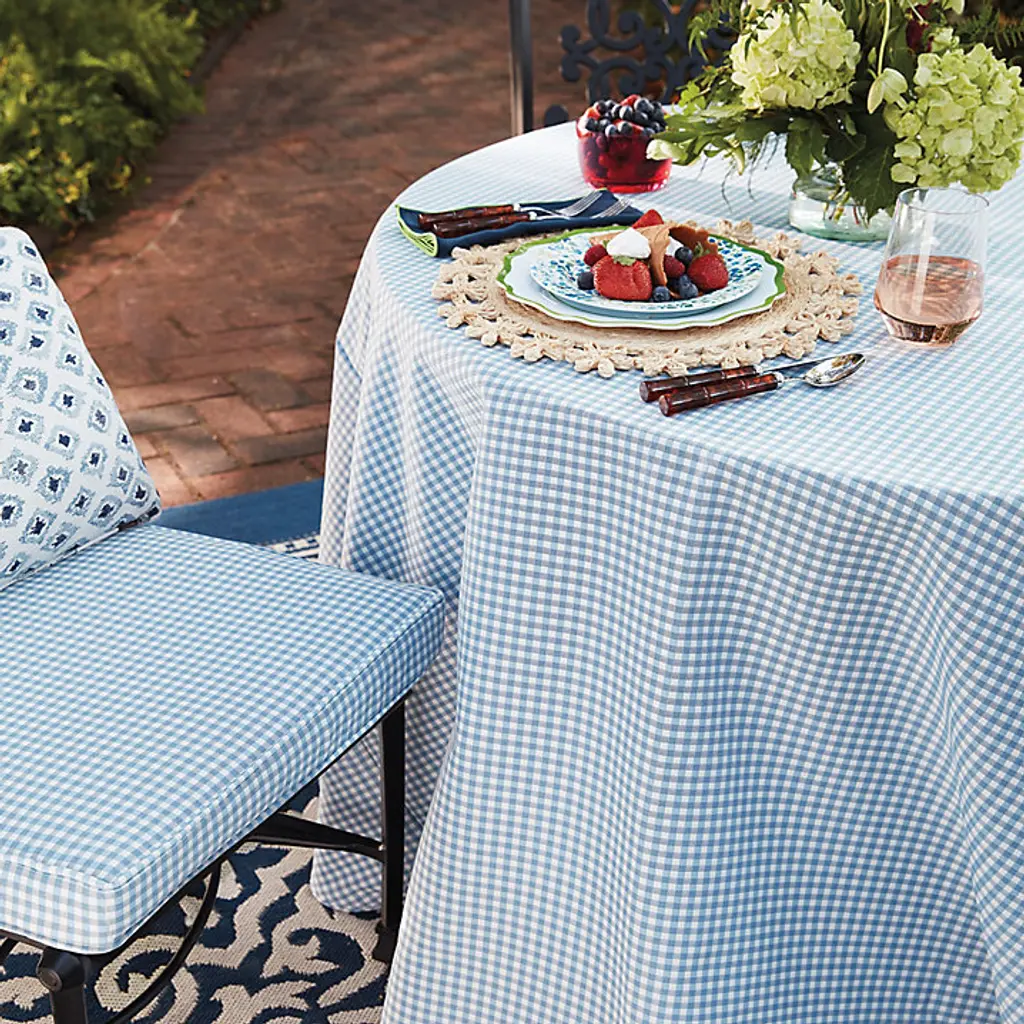 Life doesn't get any more beautiful than a classic gingham plaid that loves family, pets, and the occasional glass of cabernet. Our Tillie Gingham Cornflower InsideOut Performance Fabric is jacquard loomed in a supple basket weave of cleanable, ultra-durable UV polyester. This family-friendly fabric is ideal for upholstery, accent pillows, and drapery in busy, spill-prone areas like the kitchen, family room, patio, and porch. The fresh, easy-to-love color coordinates effortlessly with our favorite solid outdoor fabrics. Content: 70.25% UV Poly, 29.75% UV PCR PolyRepeat: Non-railroaded fabric with a 7/16” repeatCare: Spot clean easily with mild soap and water, Bleach cleanable.Width: 56 1/2" wideBallard Designs Performance Fabrics by InsideOut features:Because fabrics are available in whole-yard increments only, please round your yardage up to the next whole number if your project calls for fractions of a yard. To order fabric for Ballard Customer's-Own-Material (COM) items, please refer to the order instructions provided for each product.Ballard offers free fabric swatches. Shipping and Processing fees apply. Ten swatches maximum. We're sorry, cut fabric is non-returnable..