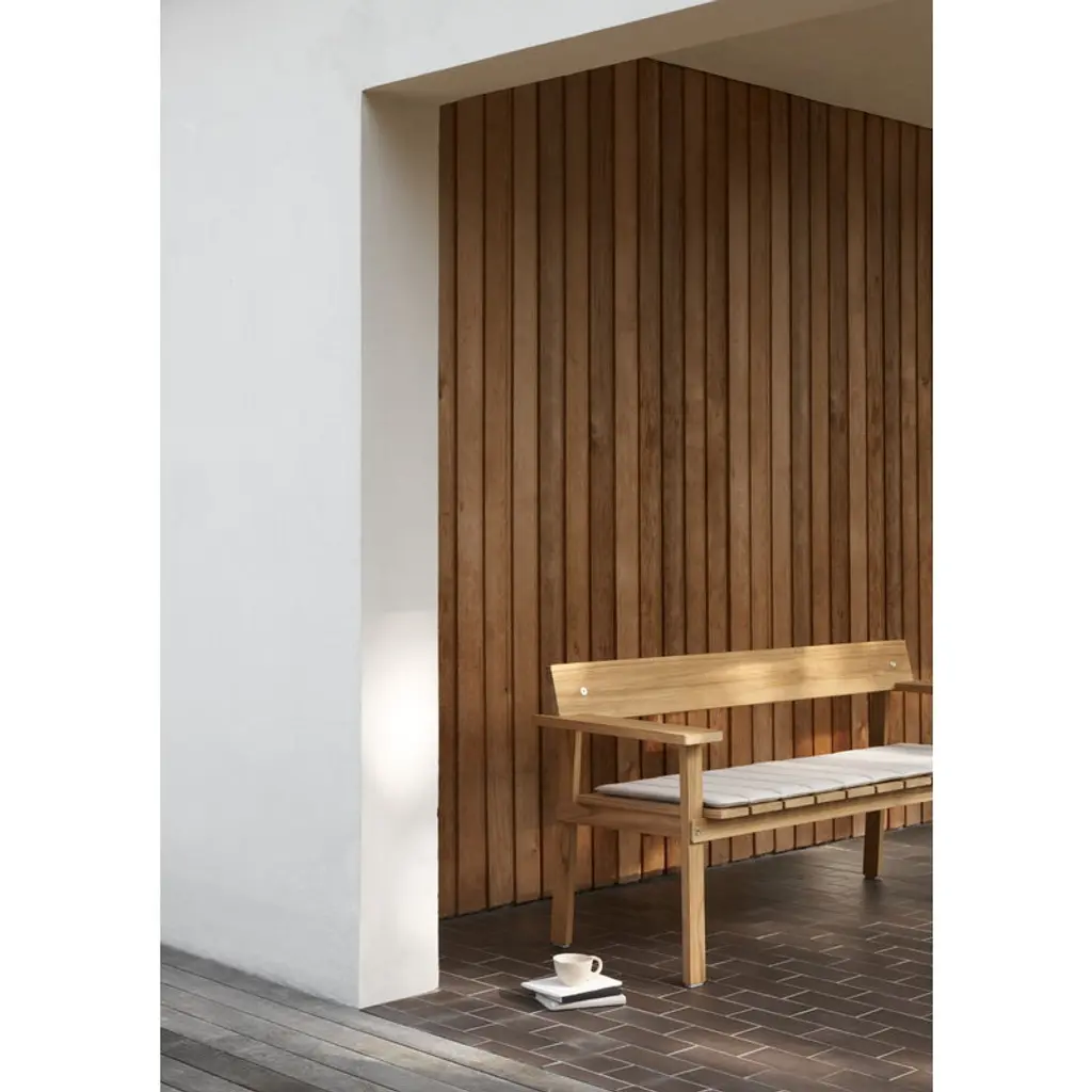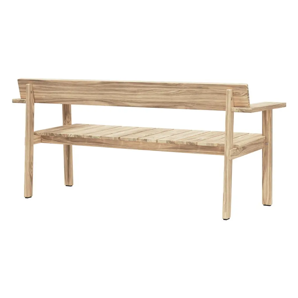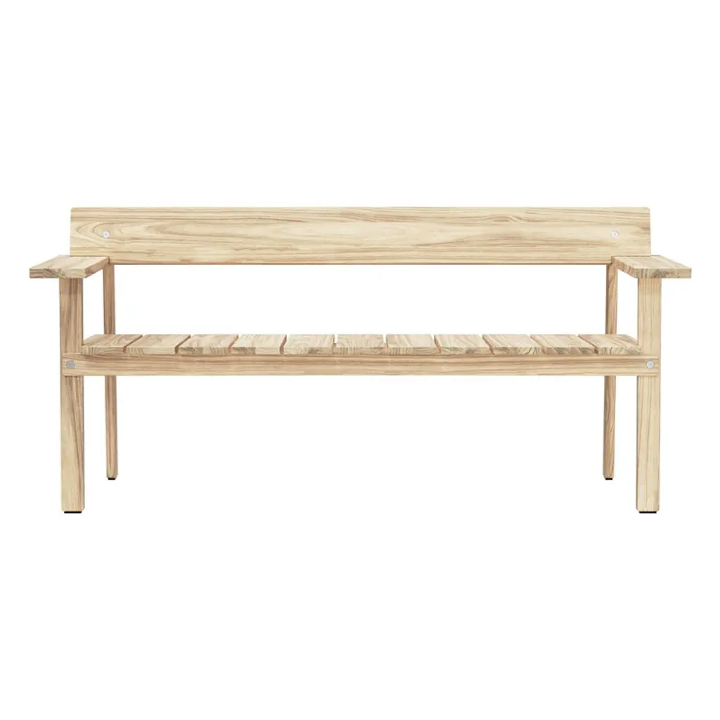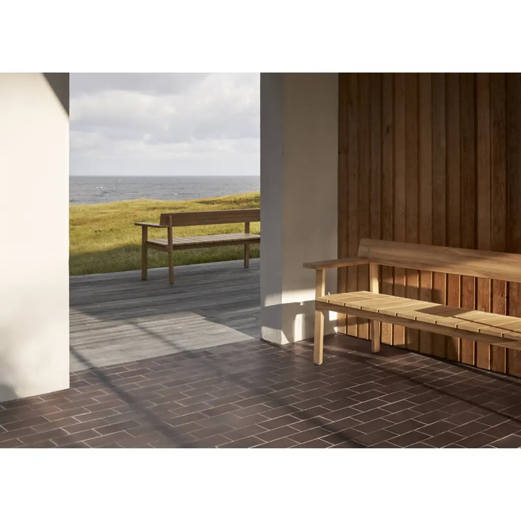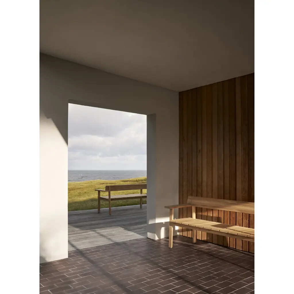 Carl Hansen & Søn's Timbur GL101 bench with its minimalist design where simple and strong elements combine beautifully. The look of the bench is completed by wide armrests that are not only beautiful but also practical, serving as a handy side table on which you can set down a cup of coffee or a novel you're reading – as long as you don't forget your book out in the summer rain! The Timbur bench is designed by Icelandic designer Gudmundur Ludvik, who draws inspiration from both nature and traditional craftsmanship. This is obvious in the look of the Timbur bench, which is brought to life by the material used: the garden bench is made of untreated teak, which patinates with time and use, making it even more unique. If you prefer an original tone, we recommend treating teak furniture with a suitable teak sealant.