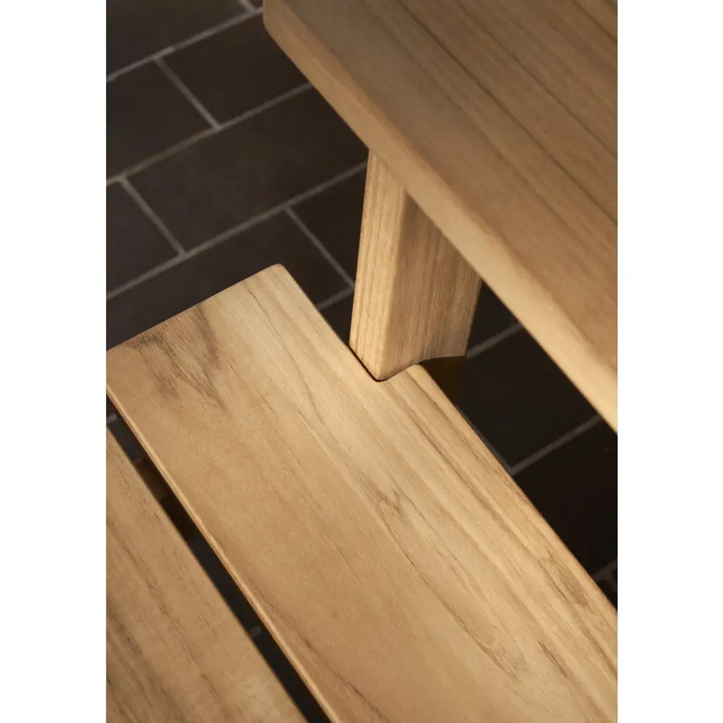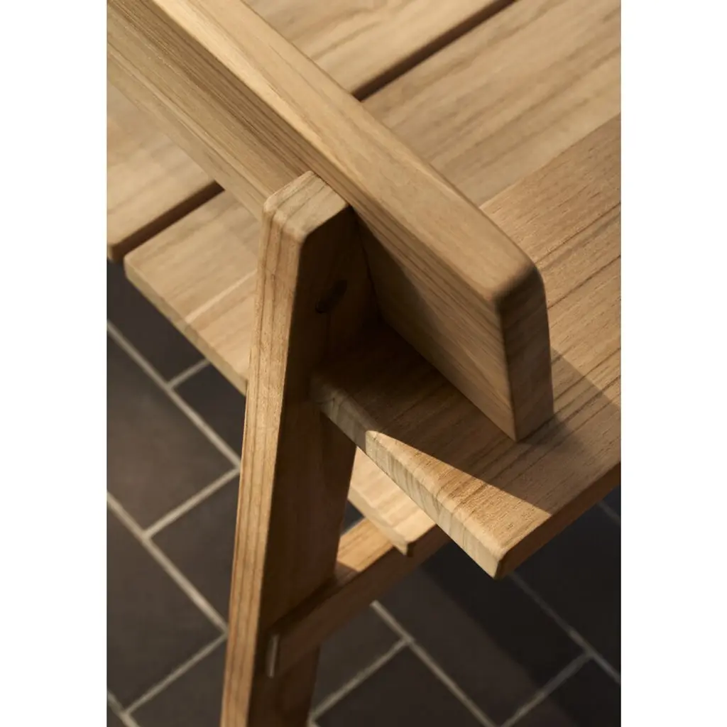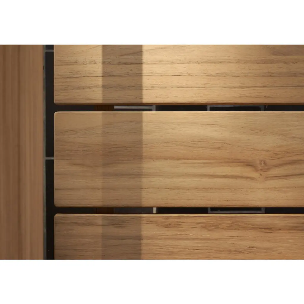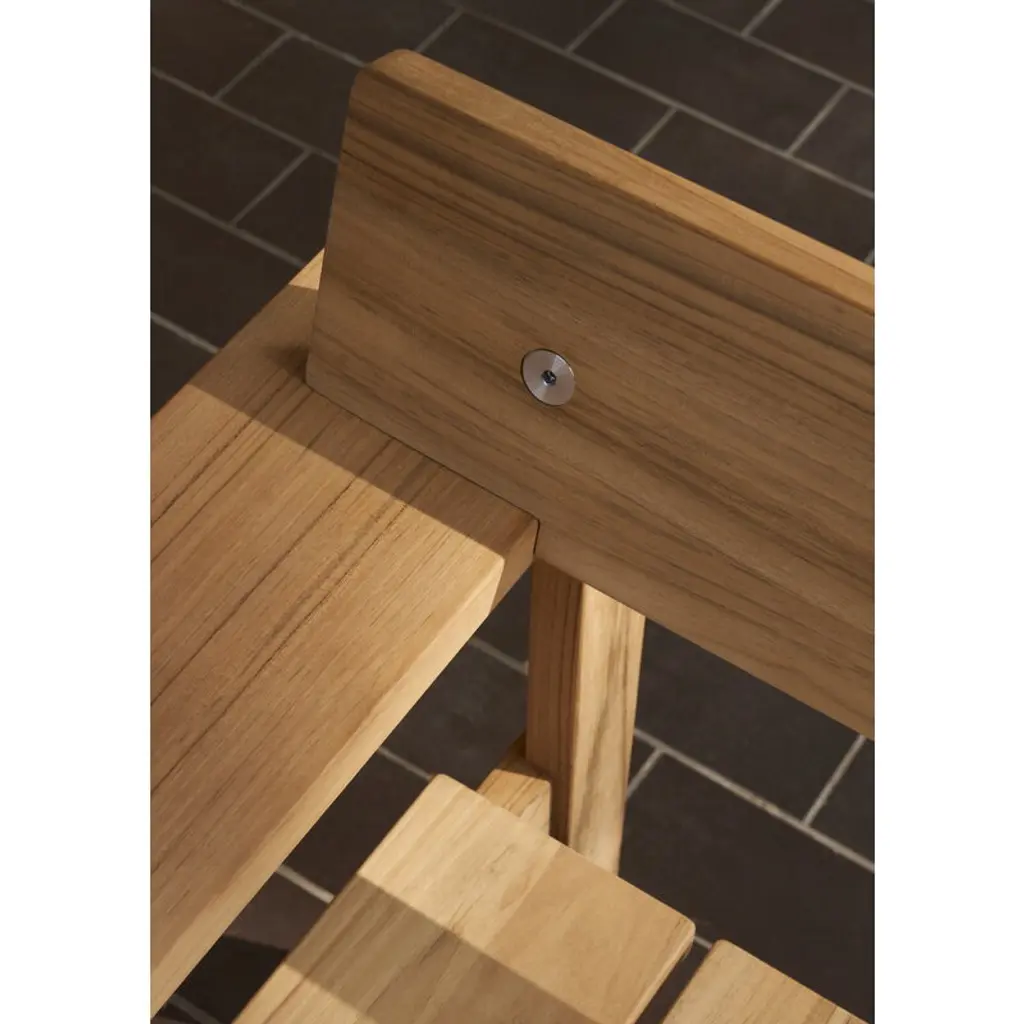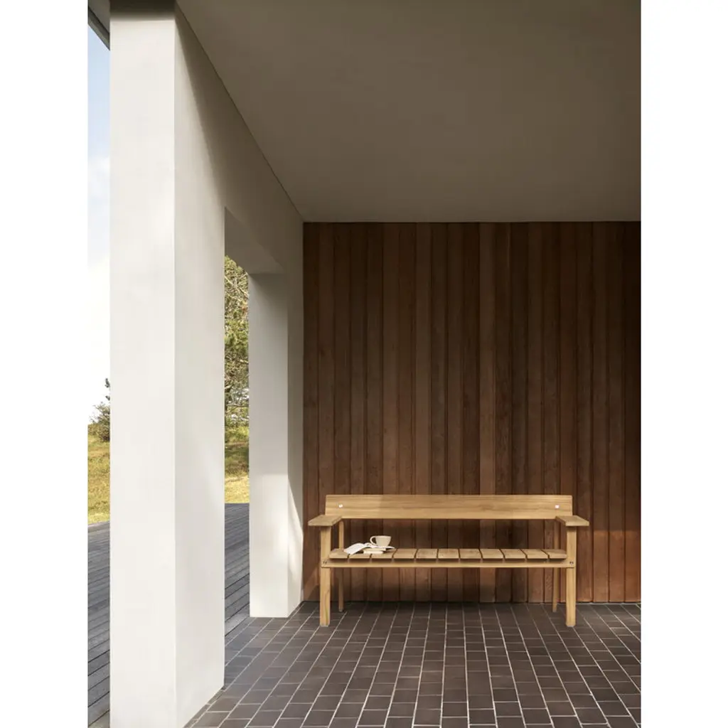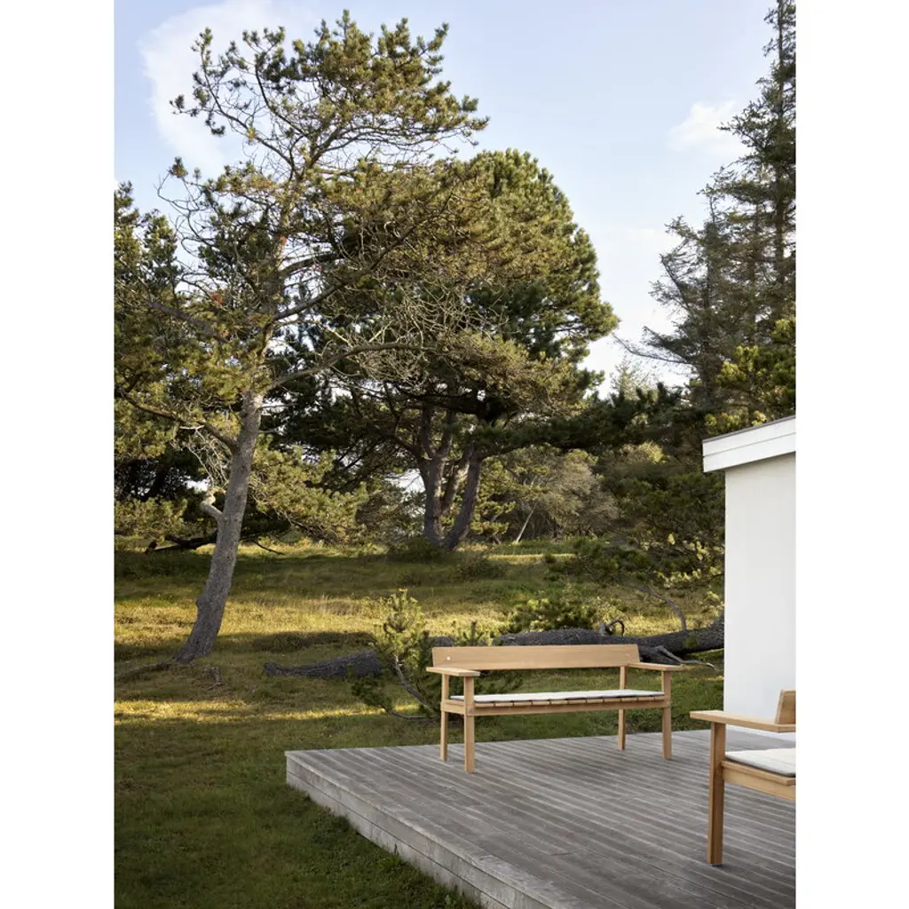 Carl Hansen & Søn's Timbur GL101 bench with its minimalist design where simple and strong elements combine beautifully. The look of the bench is completed by wide armrests that are not only beautiful but also practical, serving as a handy side table on which you can set down a cup of coffee or a novel you're reading – as long as you don't forget your book out in the summer rain! The Timbur bench is designed by Icelandic designer Gudmundur Ludvik, who draws inspiration from both nature and traditional craftsmanship. This is obvious in the look of the Timbur bench, which is brought to life by the material used: the garden bench is made of untreated teak, which patinates with time and use, making it even more unique. If you prefer an original tone, we recommend treating teak furniture with a suitable teak sealant.