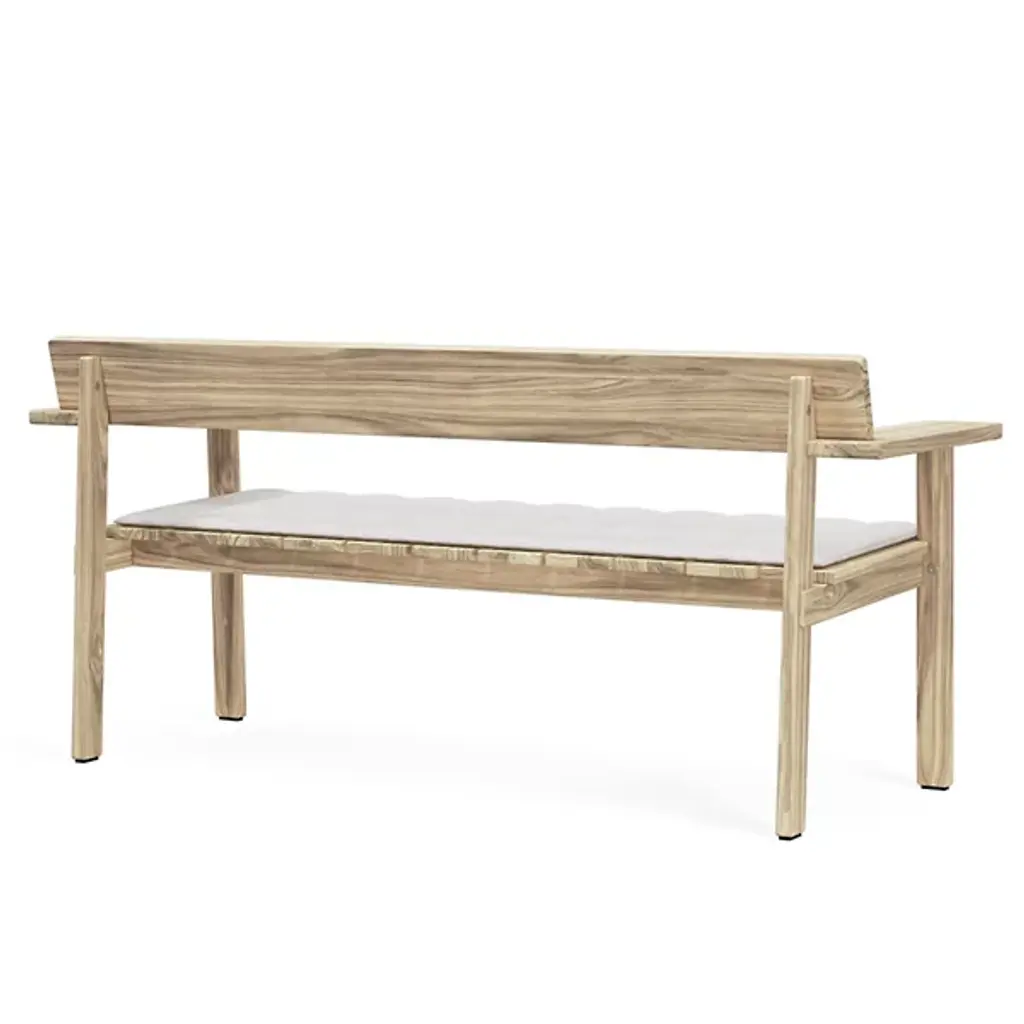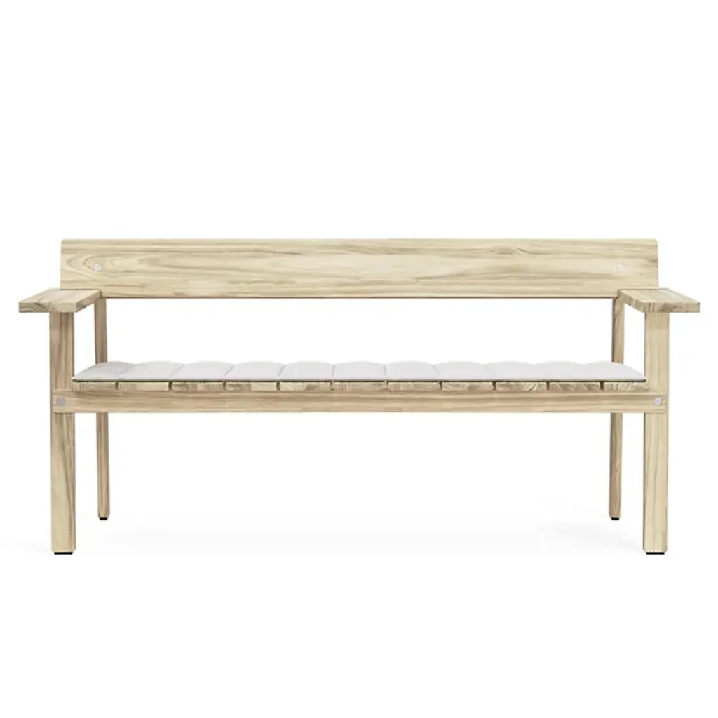 The Timbur GL101 Outdoor Bench with Cushion from Carl Hansen, designed by Icelandic designer Gudmundur Ludvik, embodies simplicity and quiet strength. Crafted from durable FSC™-certified teak, this bench showcases Ludvik’s focus on highlighting the natural beauty of the wood. Its minimalist design offers a harmonious blend of form and function, with generous armrests that double as side tables, providing ample space for a mug and small side plate. This bench perfectly blends elegance and practicality for any outdoor space.