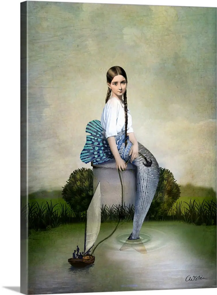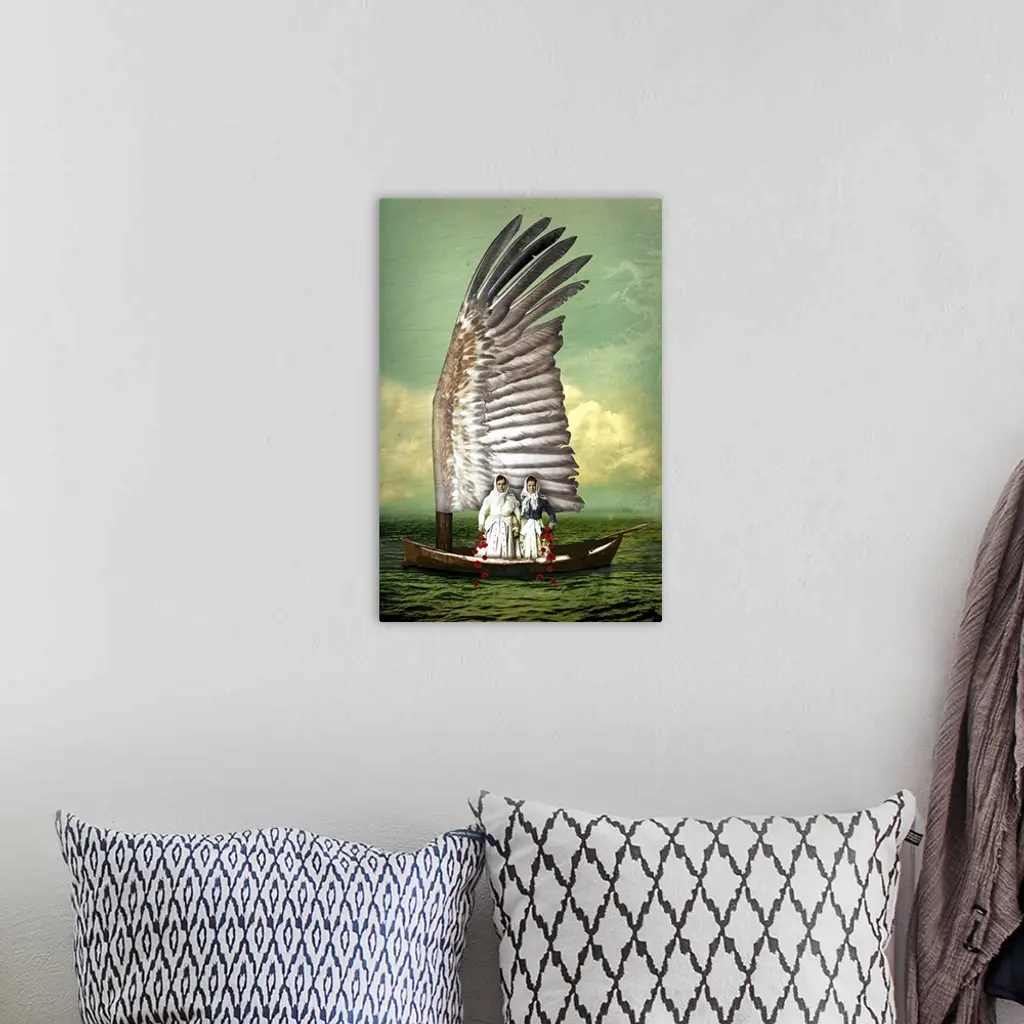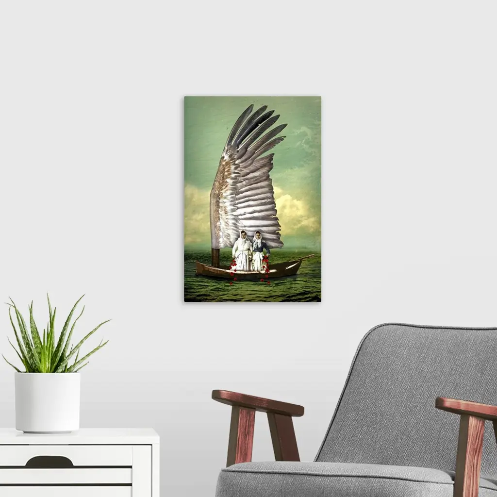 A vertical abstract composite of two woman on a boat.