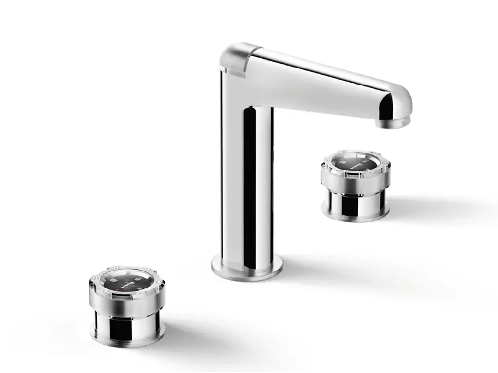 TimeAster 3601 - Three hole bidet handle diameter 52 mm with pop up waste. CROMO- CHROME: TA00201CR00 ORO - GOLD - OR 24 CARATS: TA00201AU00The collection TimeAster, strongly inspired by luxury watches in which the rhythm of time is similar to the flow of water, was built facing the daily challenge of design and involving the best manufacturing partners. The maniacal level of detail has been faced up as a desire to create an exclusive and luxury line for bath. Architect Carlo Santi designed the collection Aster in 1982, and its designes is the background of the TimeAster collection.It is not a simple restyling but a technical and aesthetic evolution applied to mixers, where the timeless concept dominated the product trend, as for every Stella collection. The main features of TimeAster are: a new style concept of the tap, mechanical precision and attention to details. The classic configuration with three holes is the more traditional shape for TimeAster, which expresses its extreme innovation in the handle. Moreover, the dial display is made in etched brass and the coloration is obtained through the process of rhodium plating, like for jewelry.