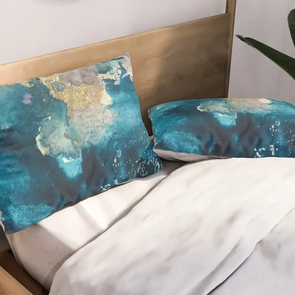 Timeless: A Gorgeous, Abstract Mixed Media Piece In Blue, Pink, And Gold By Alyssa Hamilton Art Pillow Sham