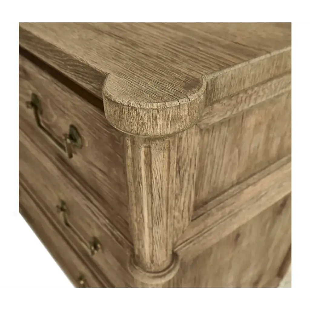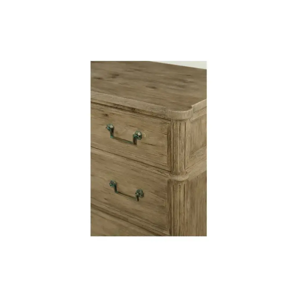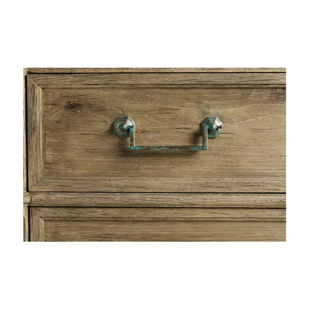 003-3-262-WNC (42") Inspired by the height of French refinement, the Kalpa chest from Jonathan Charles embodies timeless elegance with a stoic form accented by classic details. Wormy Chestnut in a natural stripped finish marries effortlessly with custom-cast hardware and lockable drawers for a versatile piece that elevates sophisticated interiors.