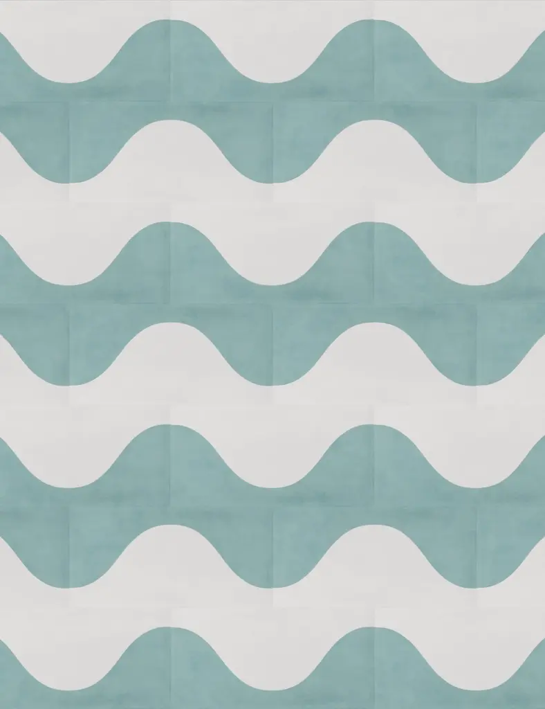A wavy modular retro pattern that can be mixed and matched to create a dual-color or ombré pattern.Price listed is for an in stock tile sample. For an order quote including freight, please message with the quantity needed before overage and the delivery address. Lead times vary based on inventory availability. In stock tiles ship within 2 weeks; made to order tiles take 4-5 weeks to produce and approximately 7-10 weeks for delivery. Type: Encaustic cement tileProduction process: Hydraulic pressing processMaterials: White cement, stone powder, additives, grey cement, sand/clay, and glazeQualities & maintenance: Porous, apply sealer as recommended by manufacturer on productTiles per box: 8 note: Please expect subtle variations in the color and thickness of our handmade tiles.Lead times may vary and delays are possible due to circumstances beyond our control. We are not responsible for delayed installation, lost work time, or altered construction timelines in the event of a delay. All tile orders are final; no returns or exchanges will be accepted. Shorter lead times depend on stock availability.Samples are only for reference to color and scale, and although they are carefully packed, samples may be inadvertently damaged during shipment or may contain fragments of chipped tile or clear breaks in the sample. We add 20% overage to all tile orders to account for this.