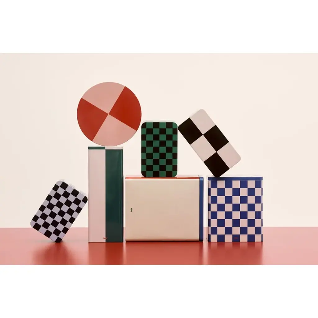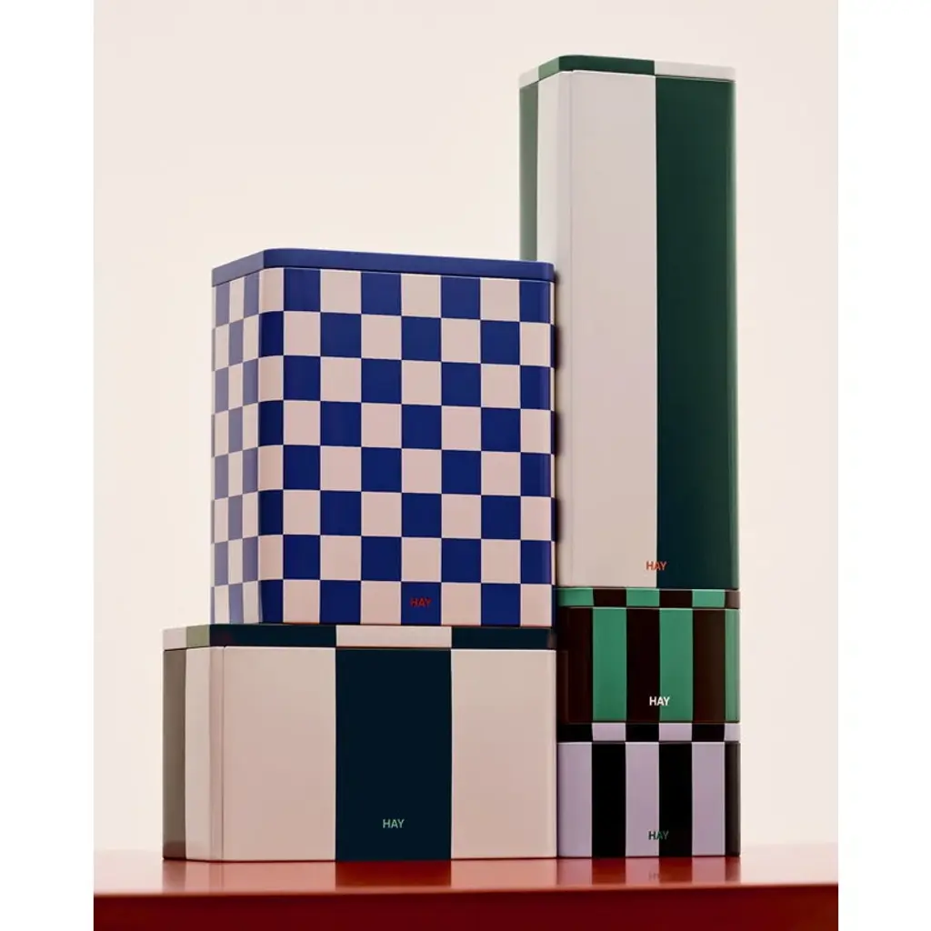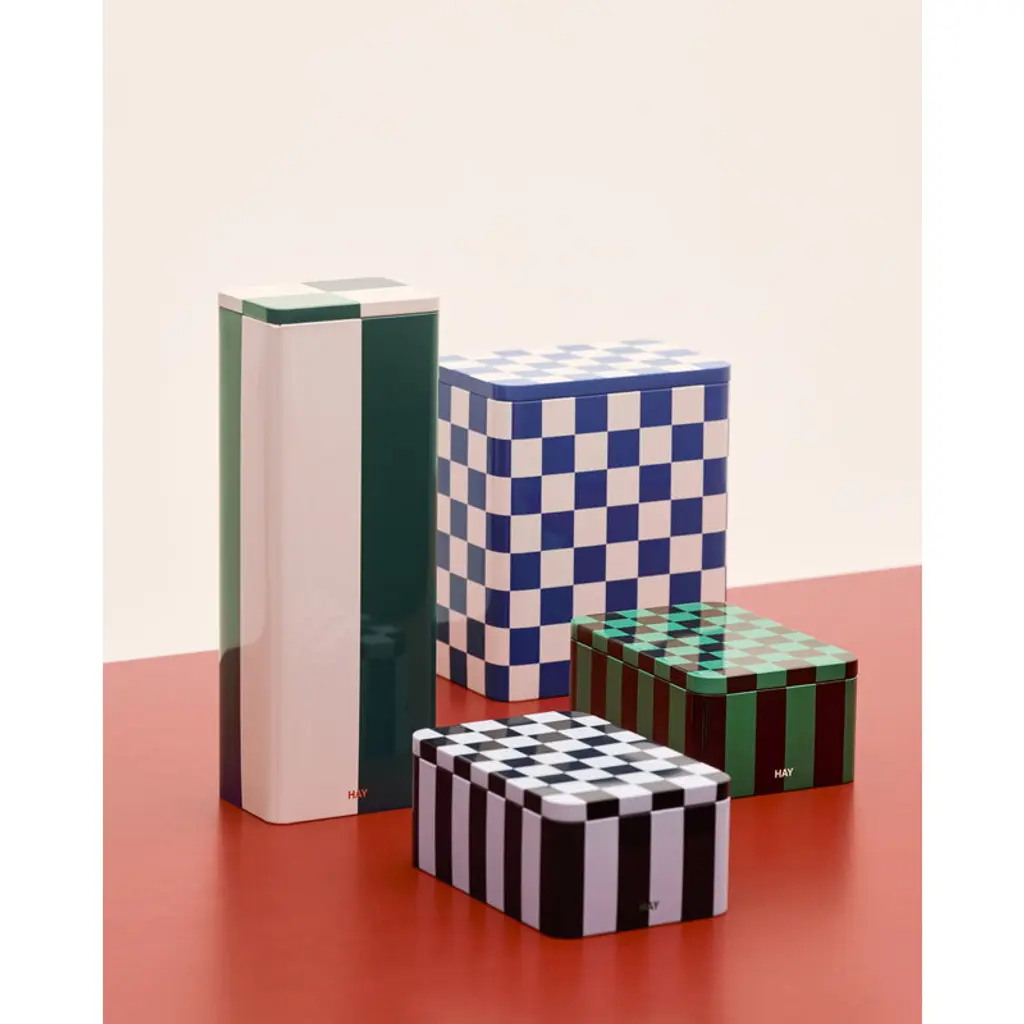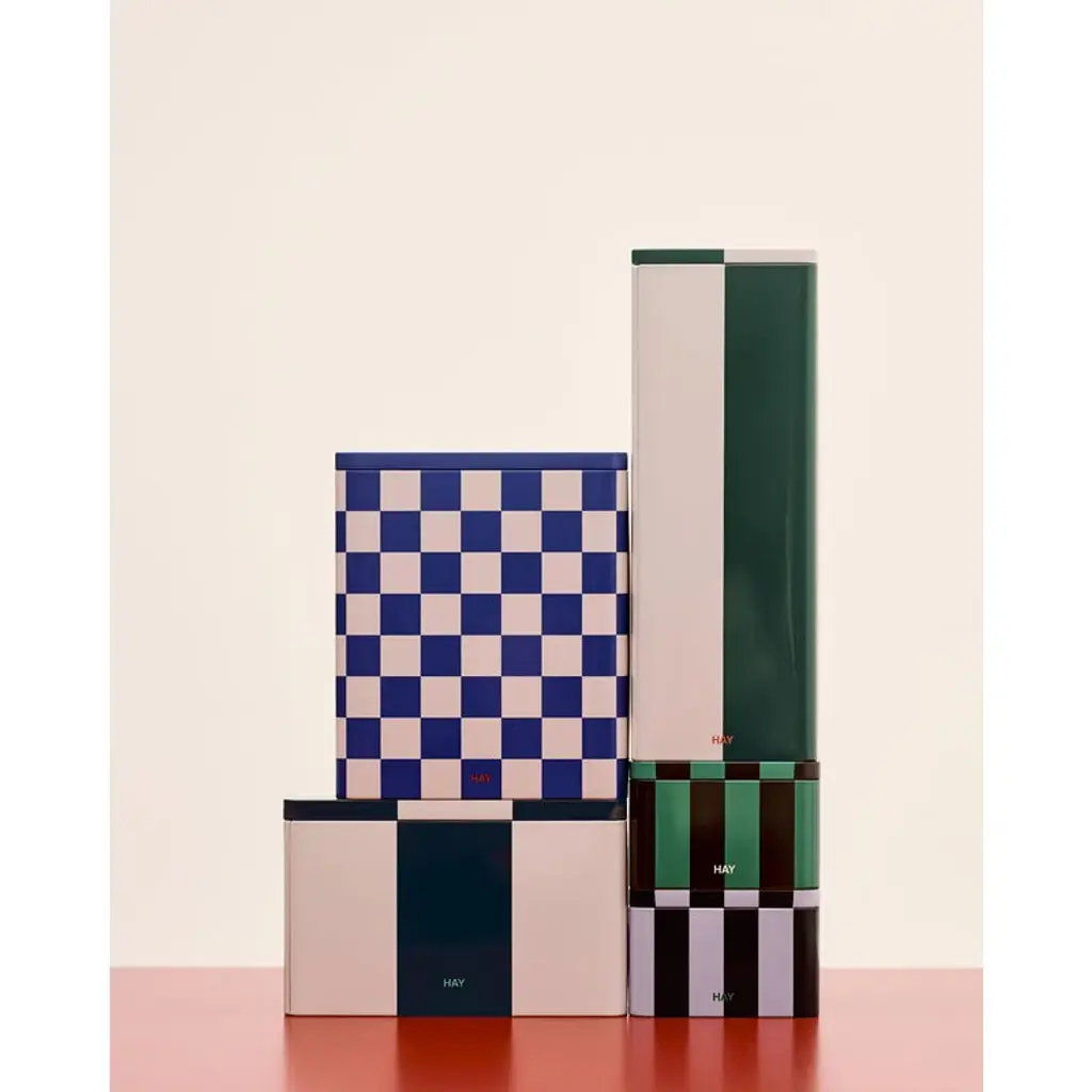 HAY's Tin container brings a nice contemporary twist to classic tin boxes with graphic patterns and stylish designs that are perfect for modern homes. The small tin box is ideal for storing everything from treats in the kitchen to craft supplies in the kids' room or pens and sticky notes in the office. Try mixing and matching different-sized and colored Tin containers together for a playful look, or opt for a coordinated set to add a touch of harmony to your home.